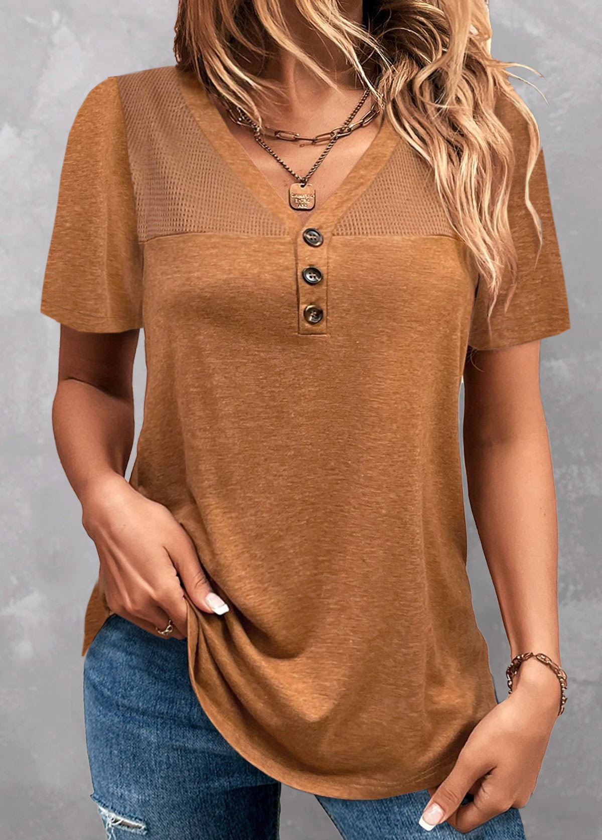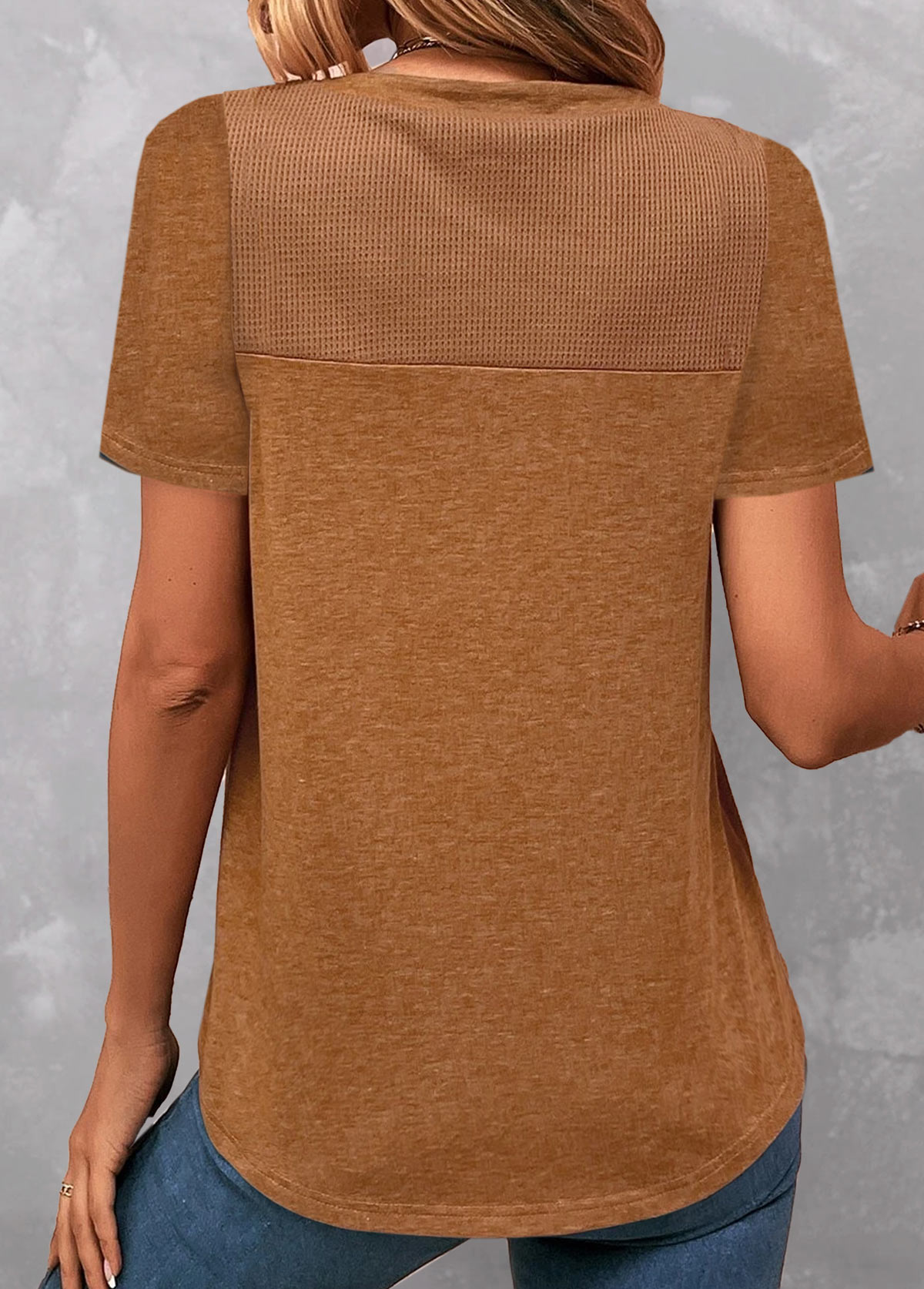 Beige Tummy Coverage Short Sleeve Split Neck T Shirt