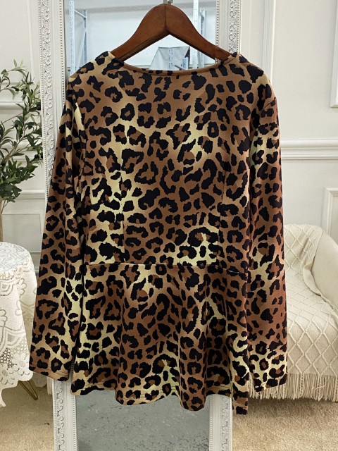 Black Tummy Coverage Animal Print Long Sleeve T Shirt