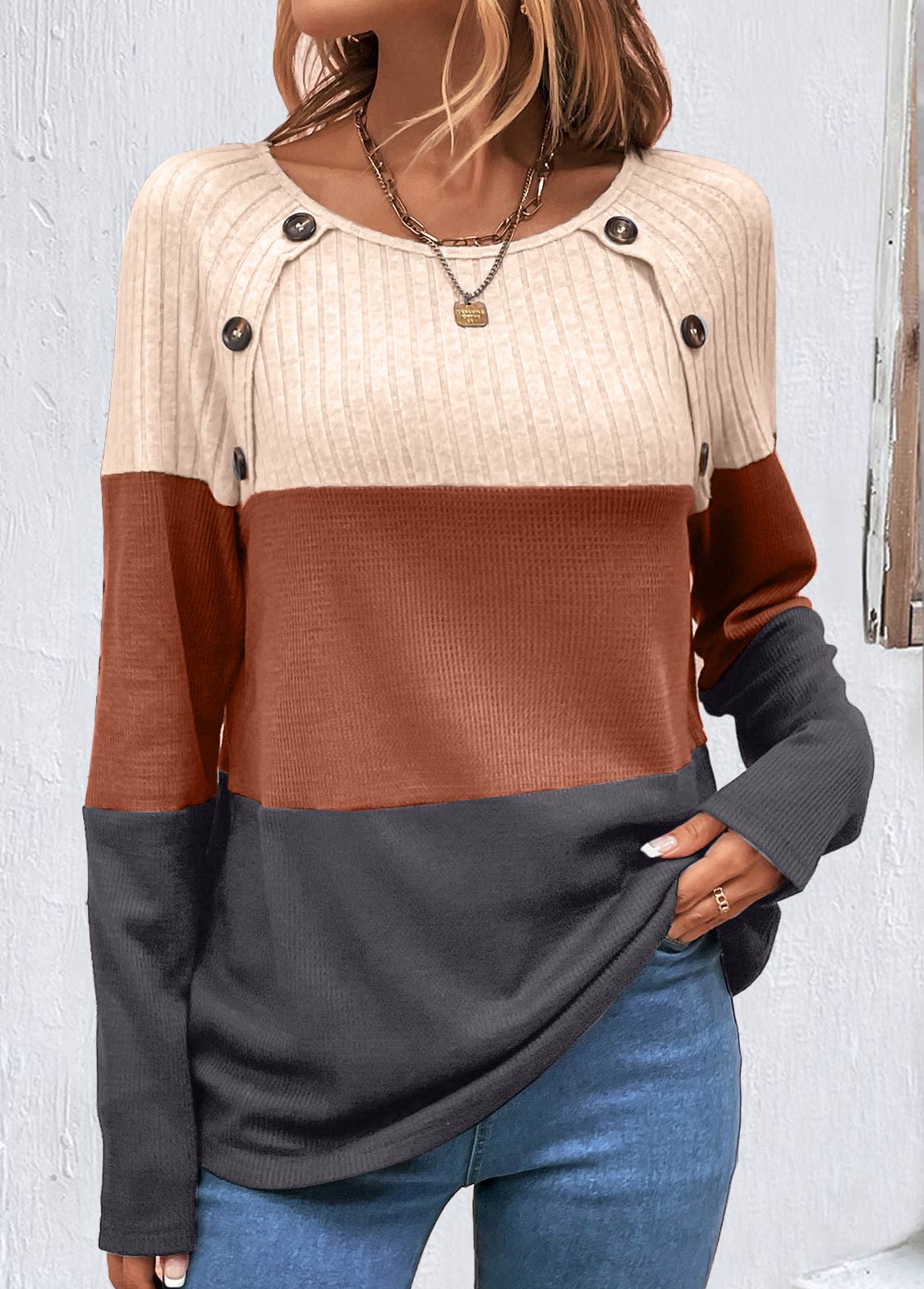 women's clothes / Tops / Tees&T-shirts  /  Dark Coffee Button Long Sleeve T Shirt