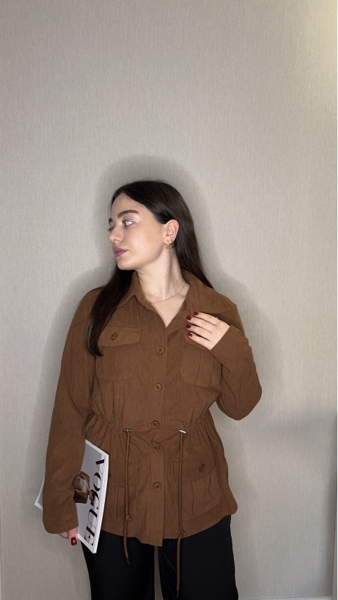 Dark Camel Pocket Straight Leg Elastic Waist Pants