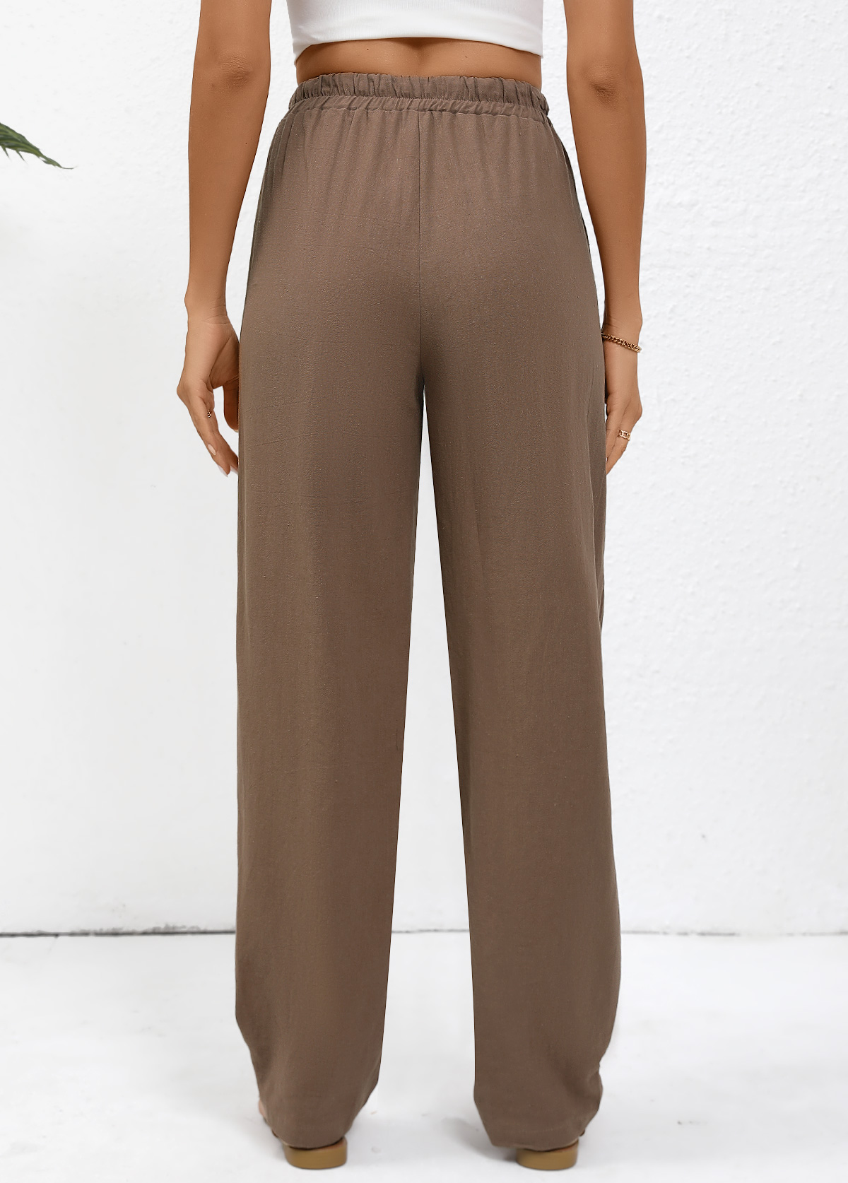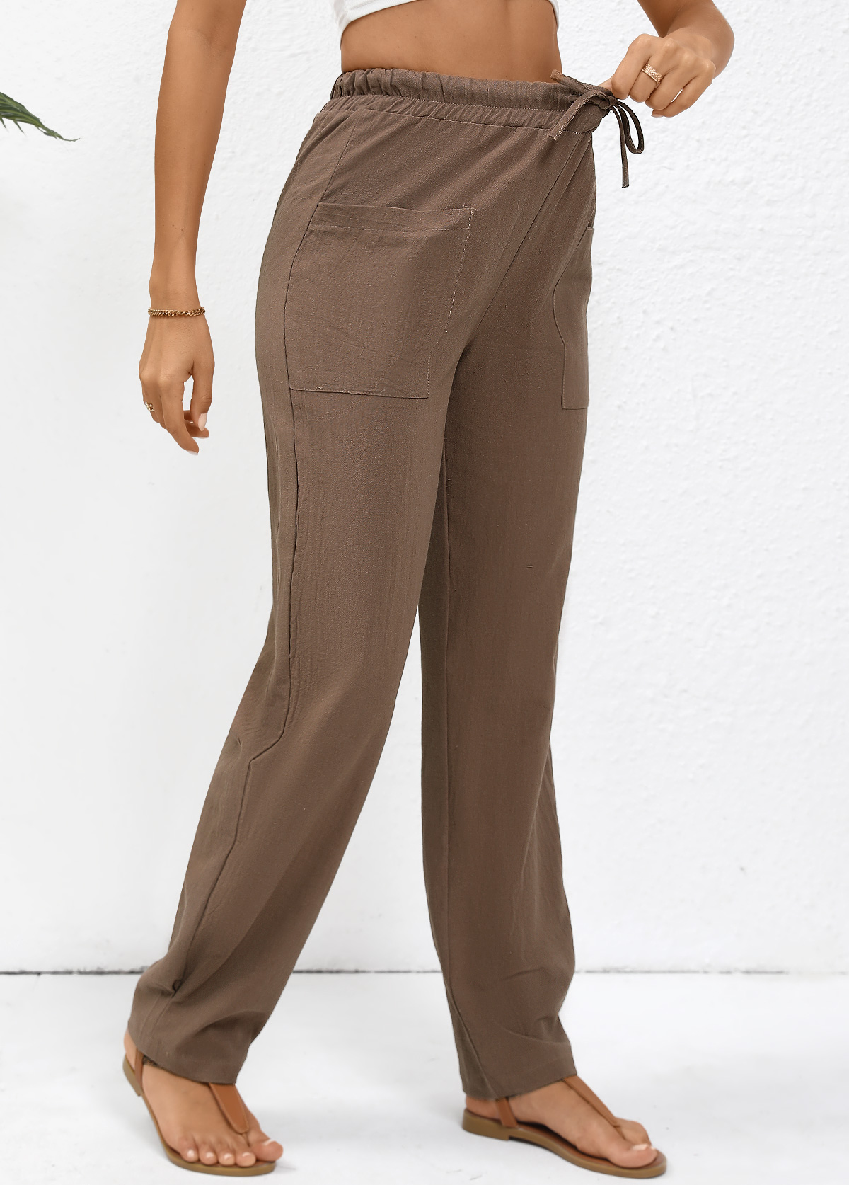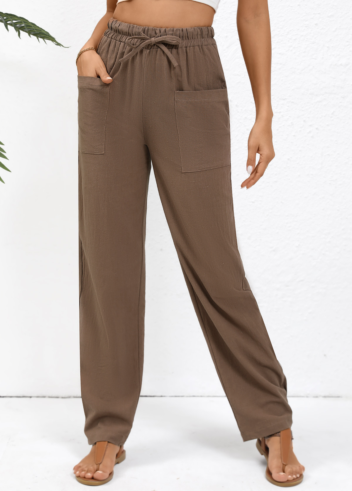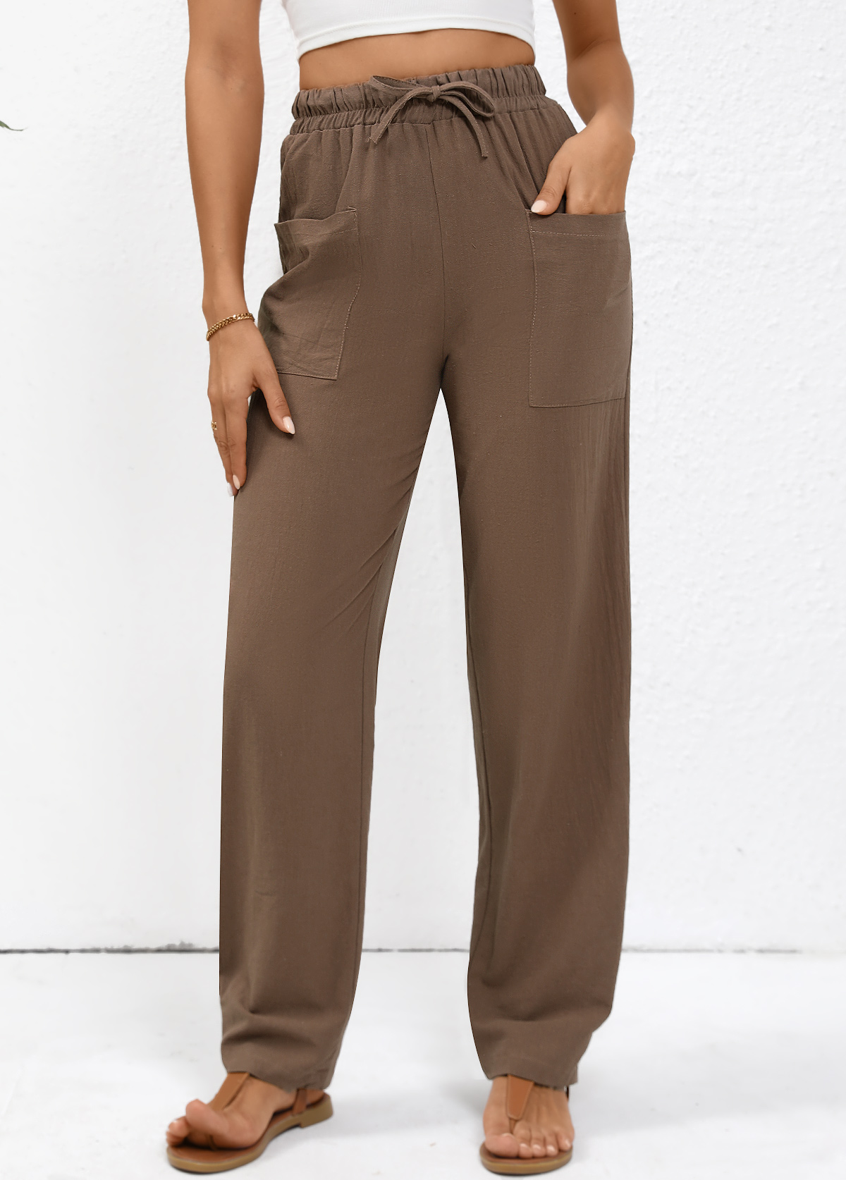 Dark Camel Pocket Straight Leg Elastic Waist Pants
