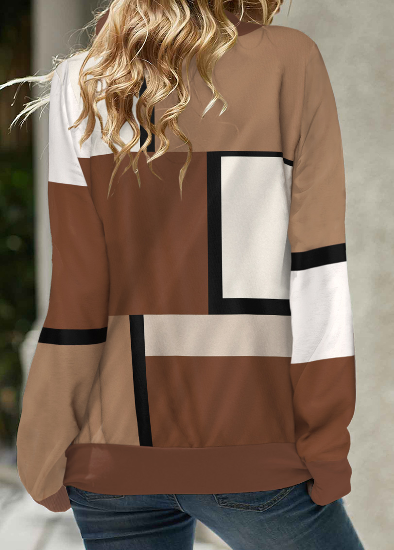 Multi Color Tummy Coverage Geometric Print Long Sleeve Sweatshirt