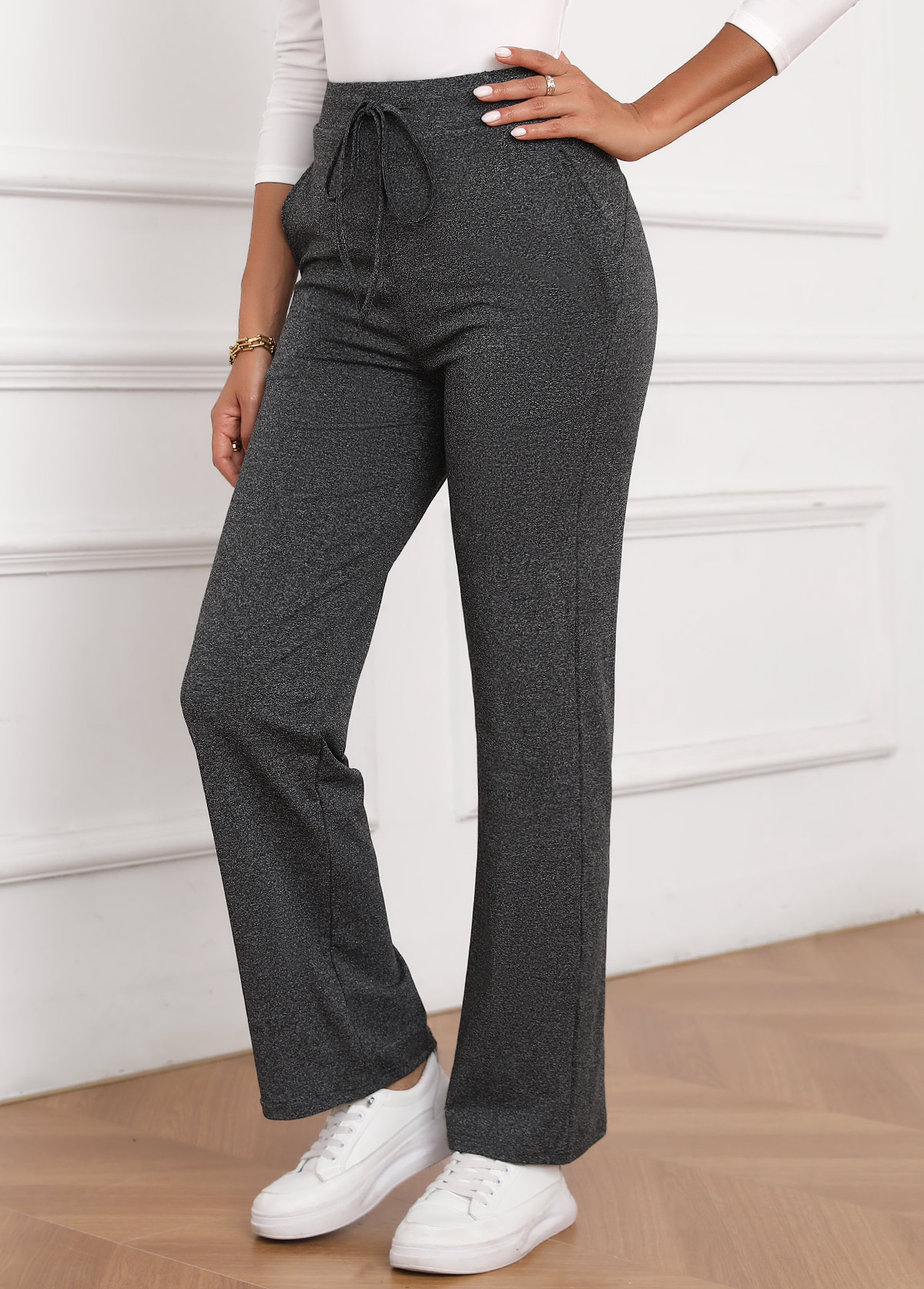 Dark Grey Bowknot Drawastring High Waisted Pants