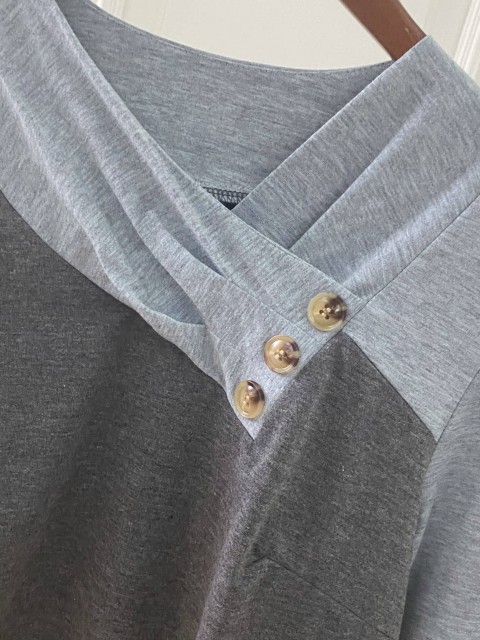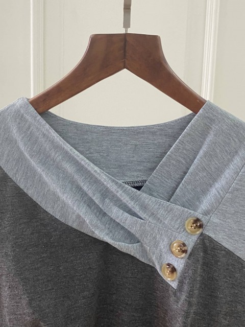 Wine Red Button Long Sleeve Asymmetrical Neck Sweatshirt