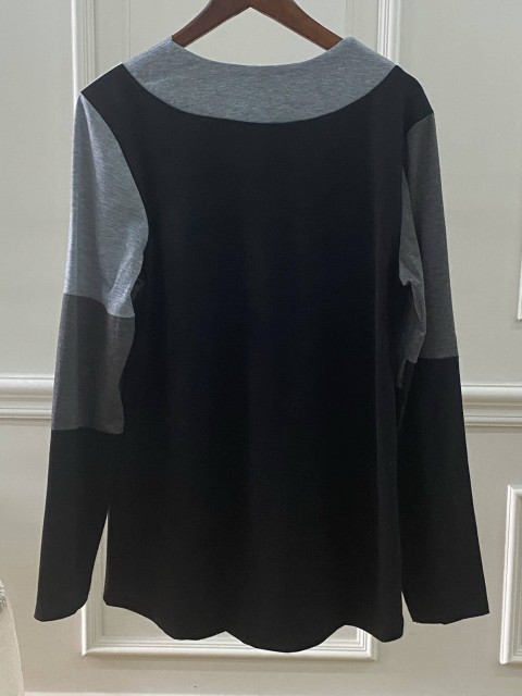 Grey Patchwork Geometric Print Long Sleeve T Shirt