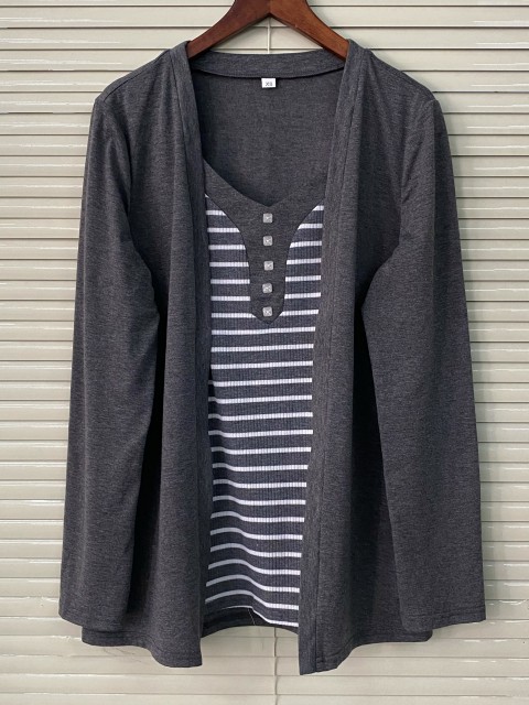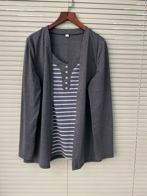 Multi Color Tummy Coverage Striped Long Sleeve Sweatshirt