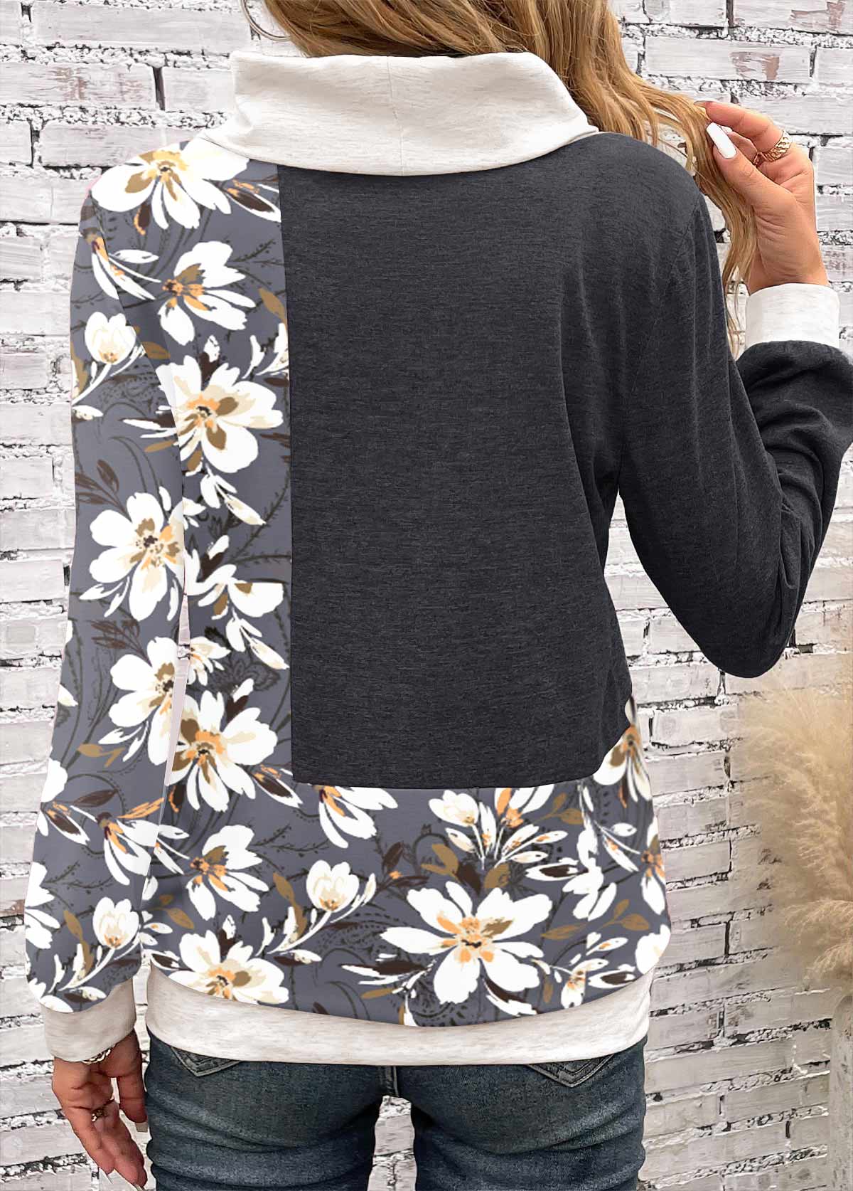Dusty Blue Scalloped Hem Floral Print Long Sleeve Sweatshirt