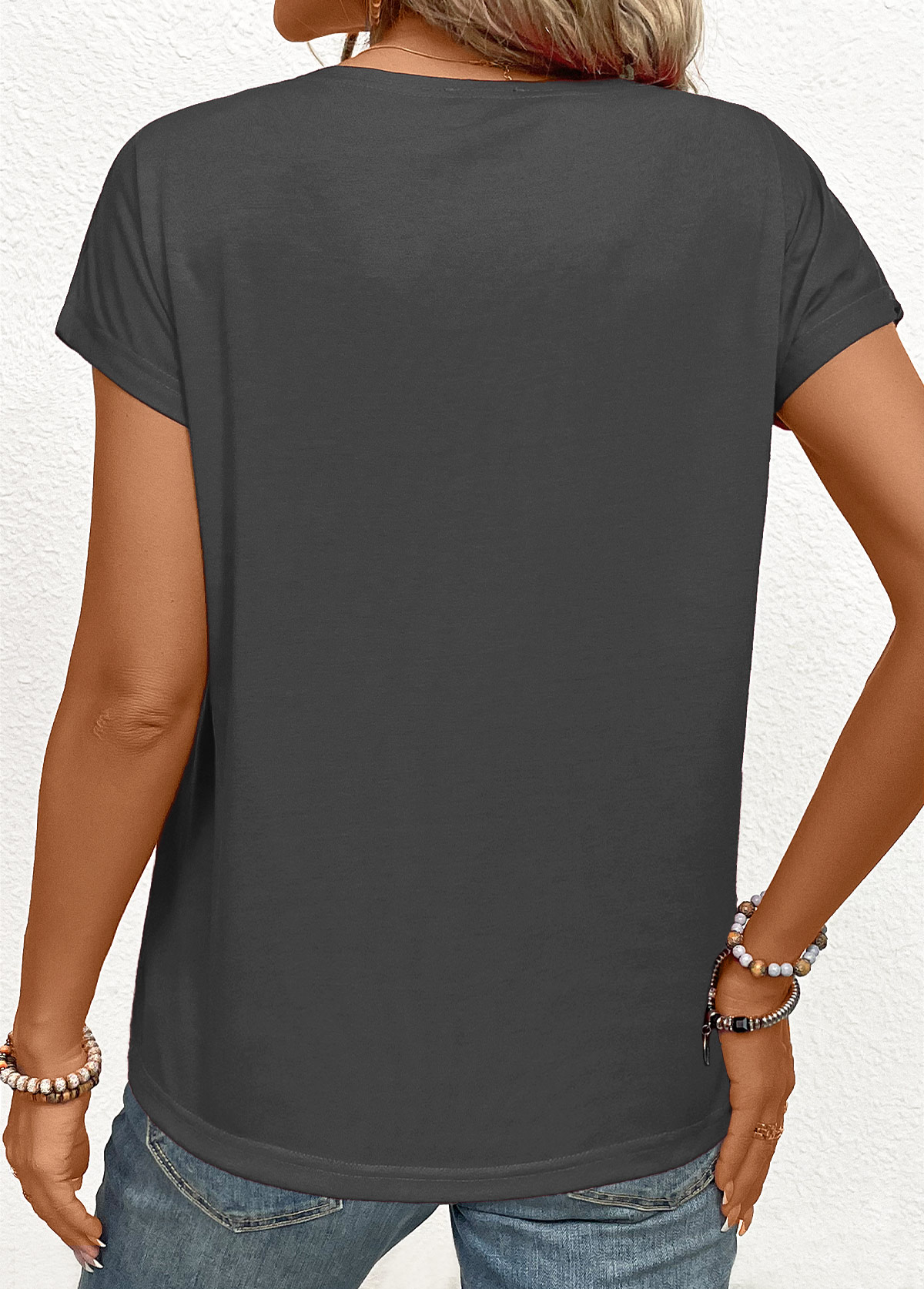 White Curved Hem Short Sleeve Split Neck T Shirt