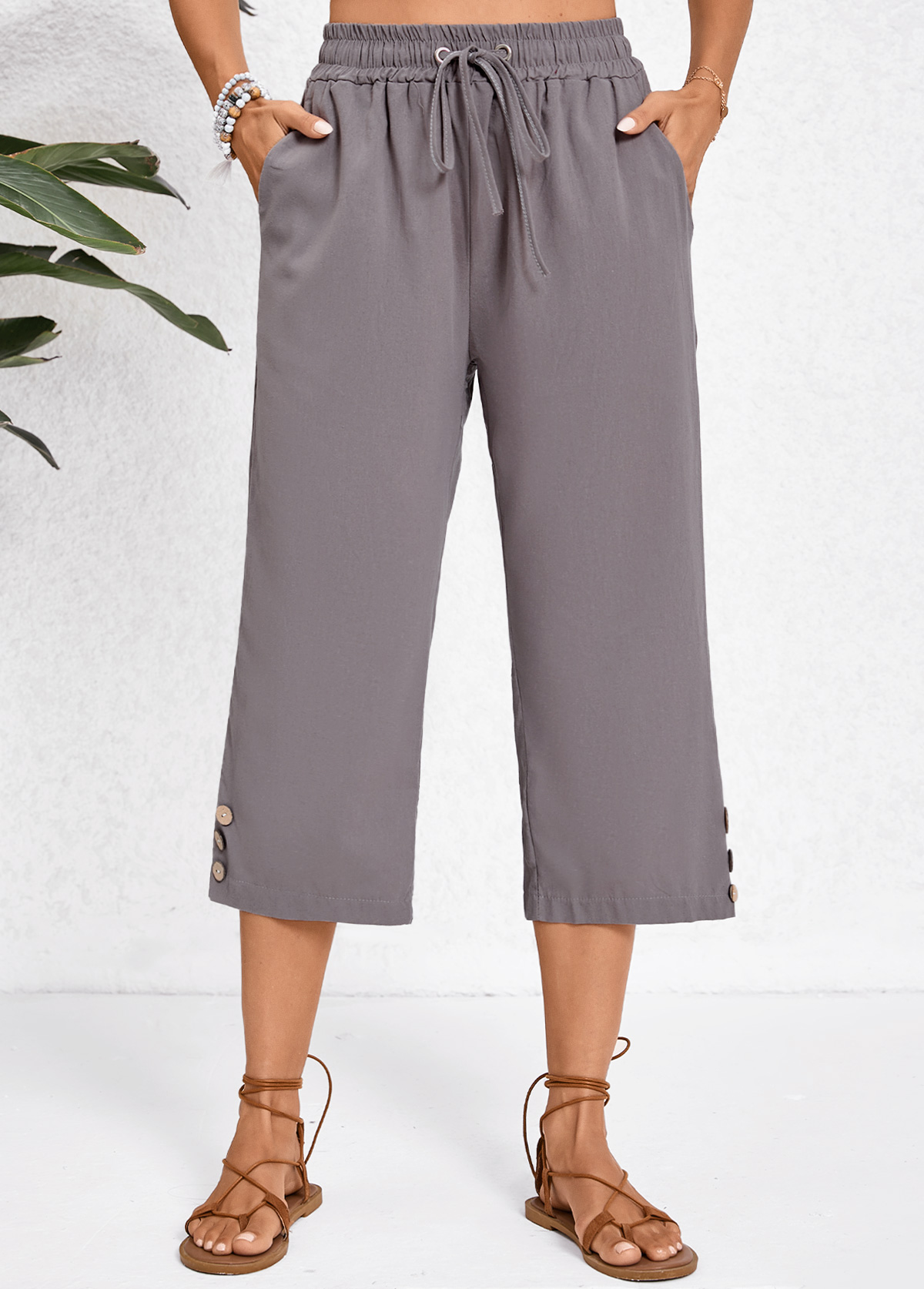 women's clothes / Bottoms / Pants  /  Dark Grey Pocket Elastic Waist High Waisted Pants