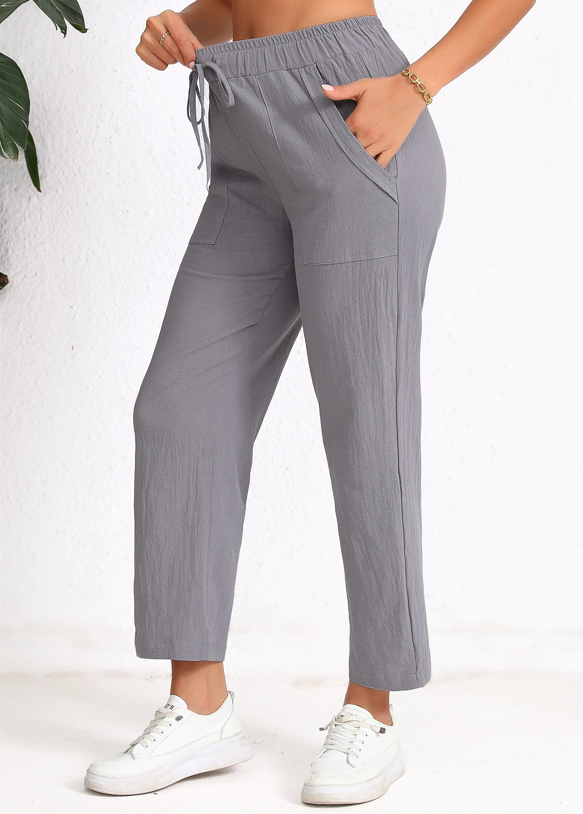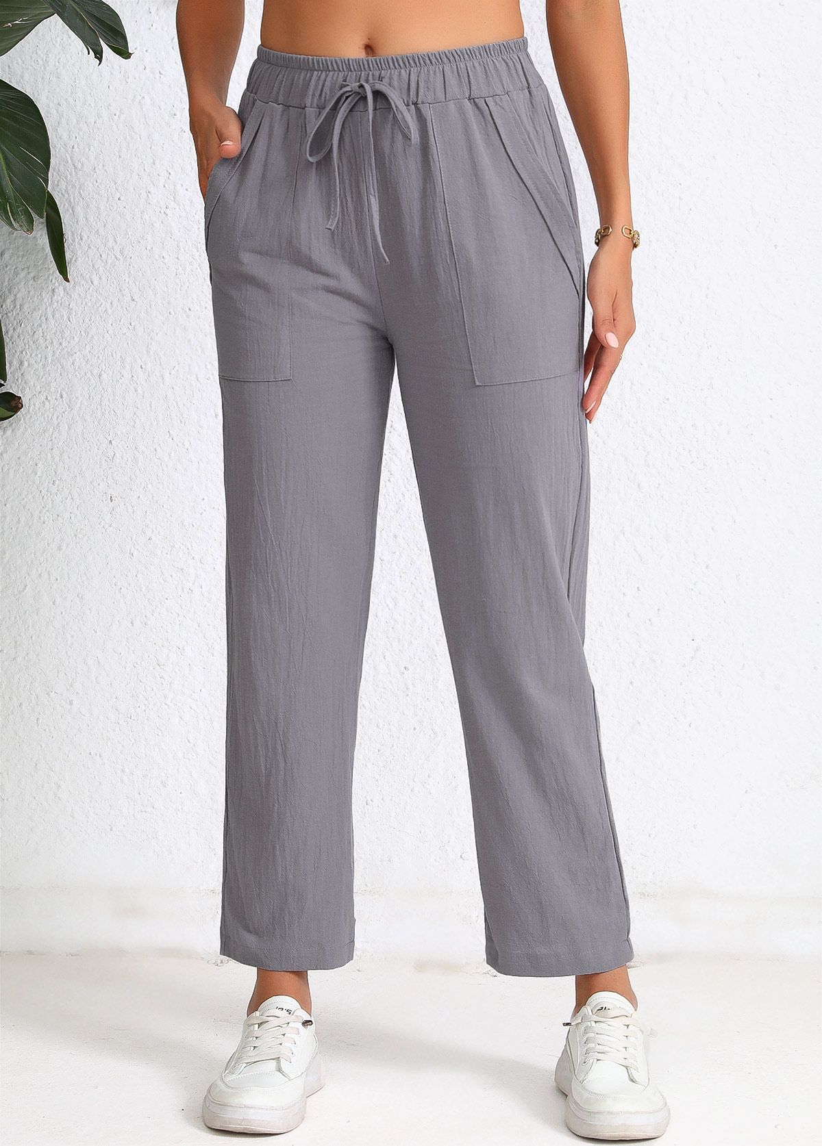 women's clothes / Bottoms / Pants  /  Dark Grey Pocket Elastic Waist High Waisted Pants
