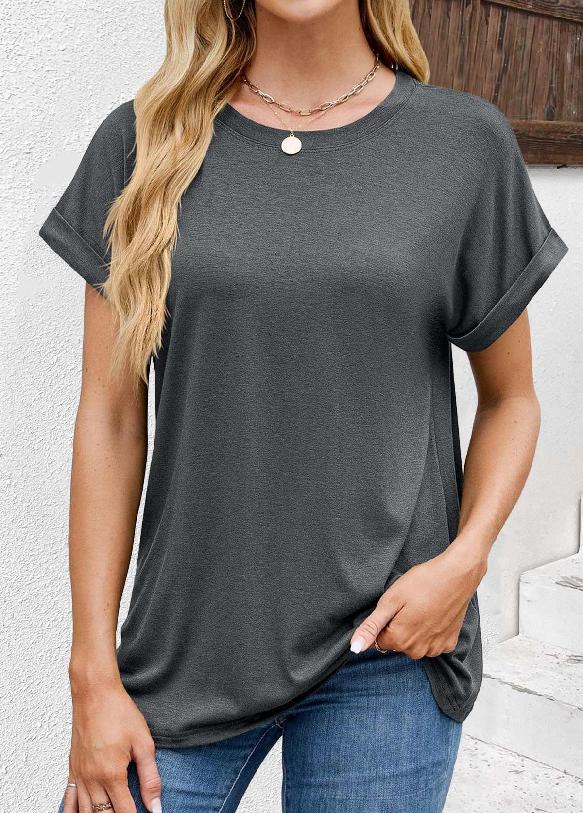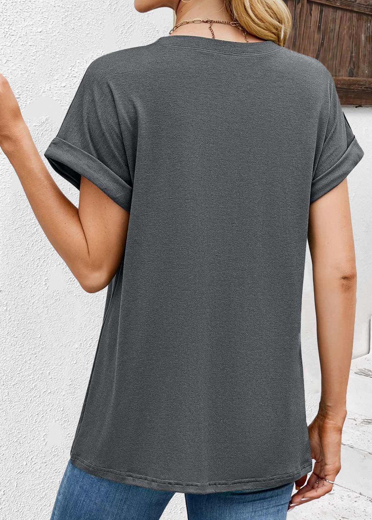 White Curved Hem Short Sleeve Split Neck T Shirt