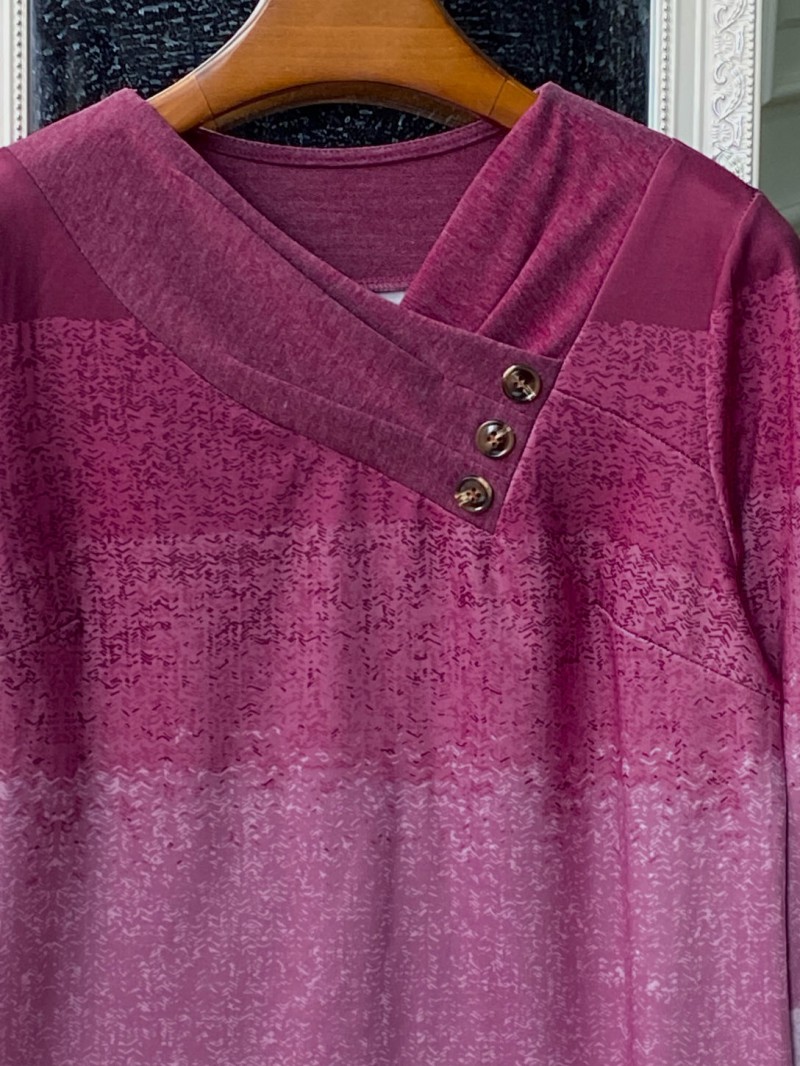 Wine Red Button Long Sleeve Asymmetrical Neck Sweatshirt