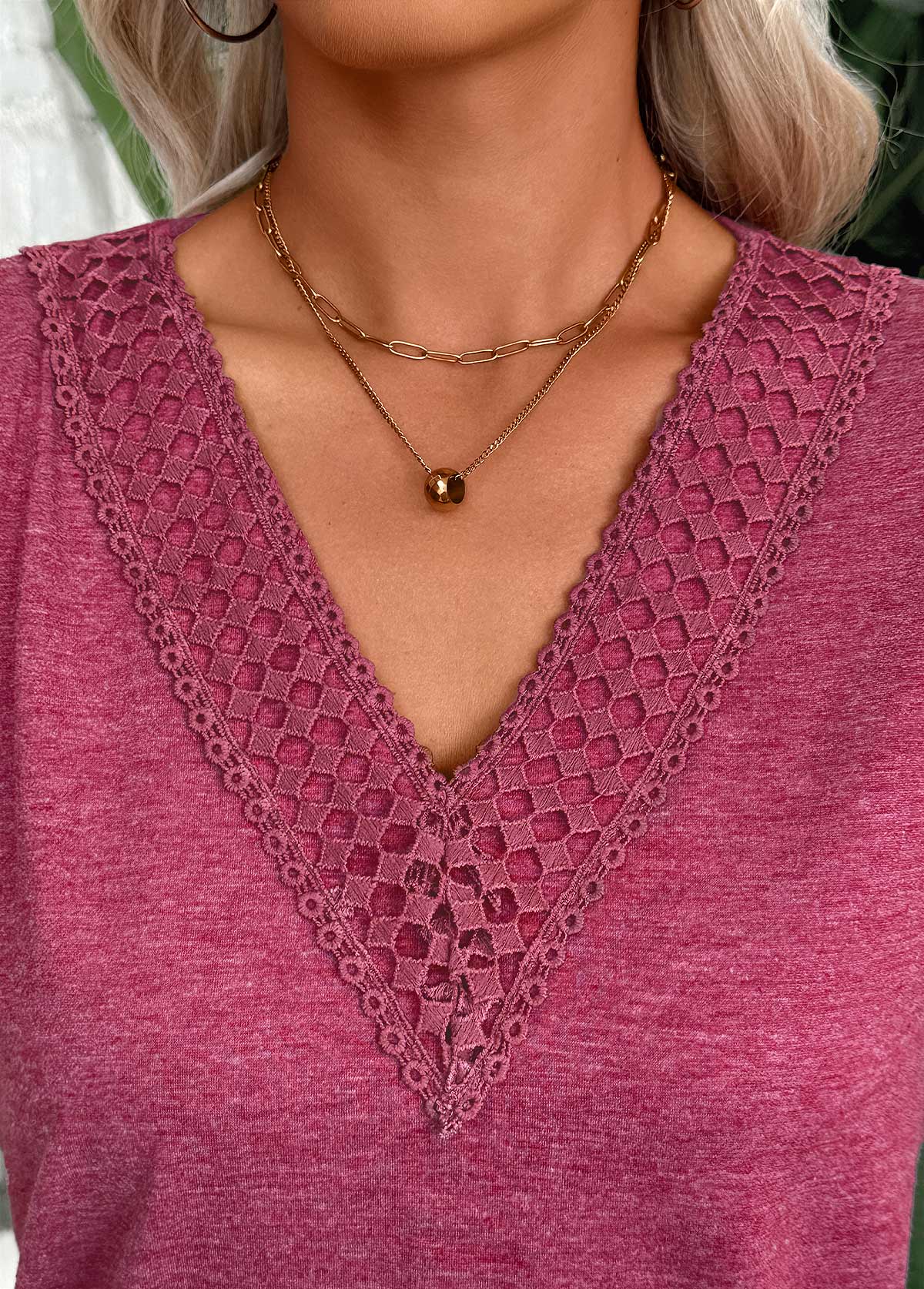 Deep Red Patchwork Plaid Long Sleeve T Shirt