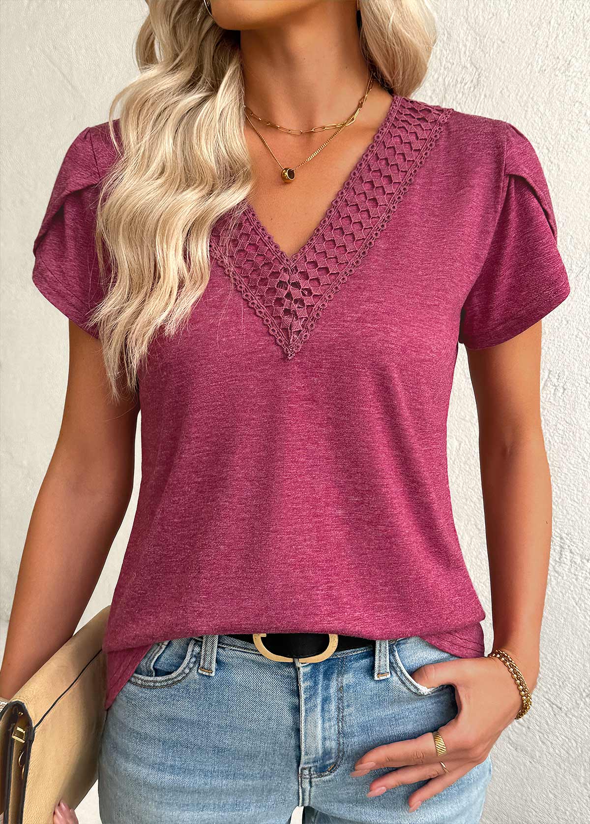 Light Yellow Short Sleeve Split Neck T Shirt