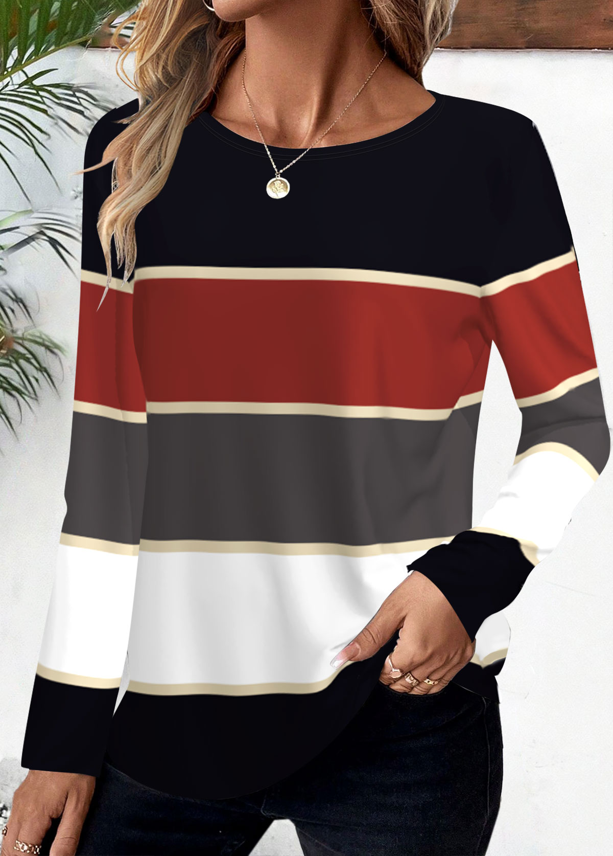 Light Blue Tummy Coverage Striped Long Sleeve T Shirt