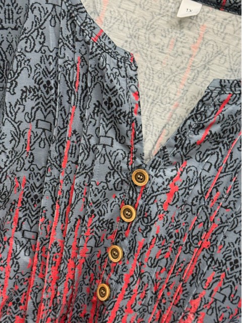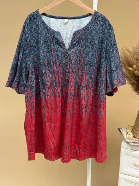 Embrace effortless style with this deep red ombre tunic. The split neck design adds a chic touch, complemented by decorative buttons at the collar. Its medium length drapes gracefully, offering a flattering fit that conceals the midsection. Perfect for daily wear, this casual piece combines comfort with a vibrant splash of color.