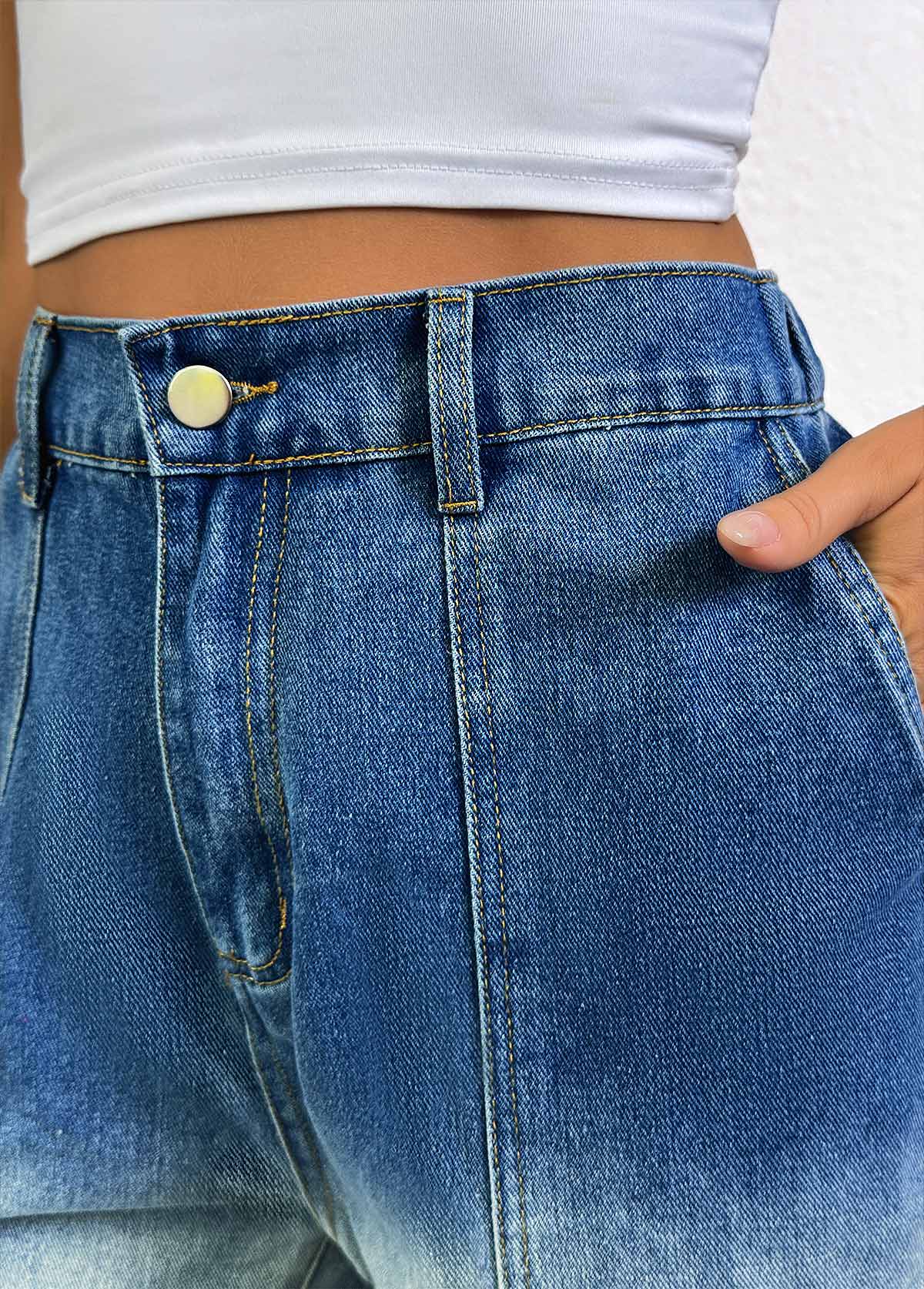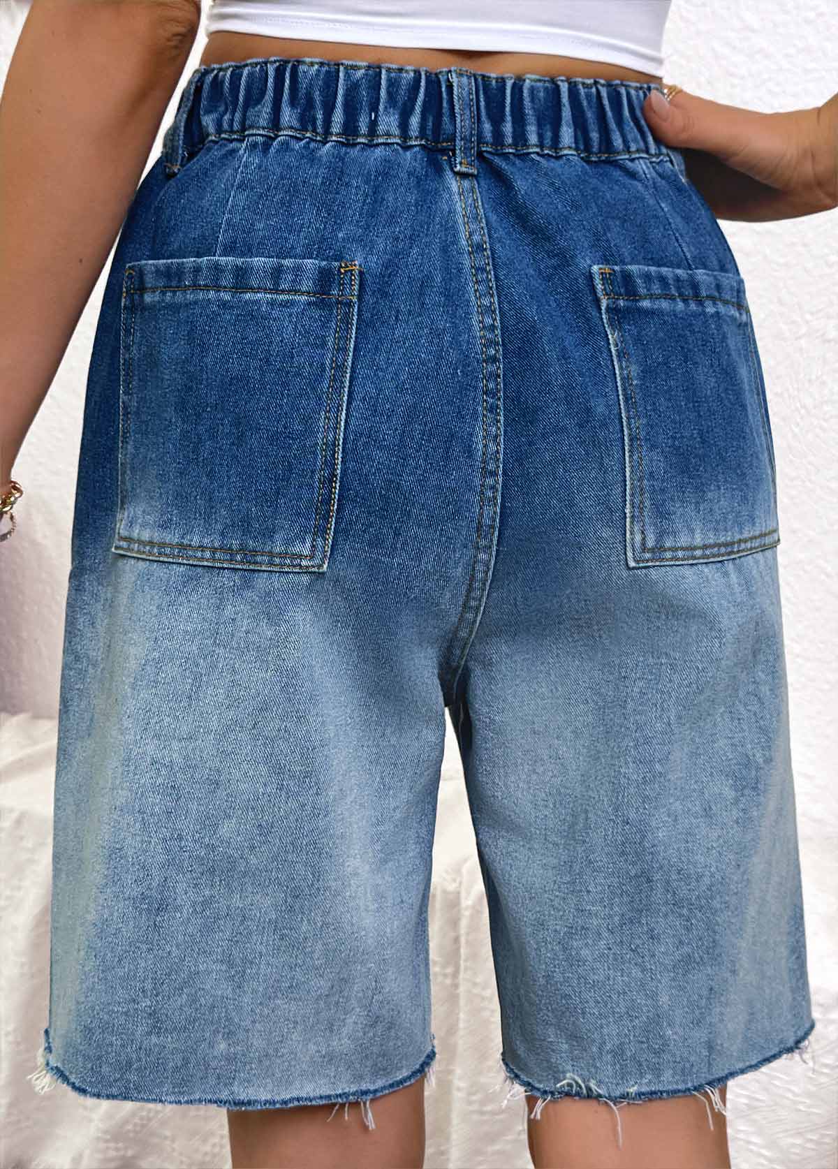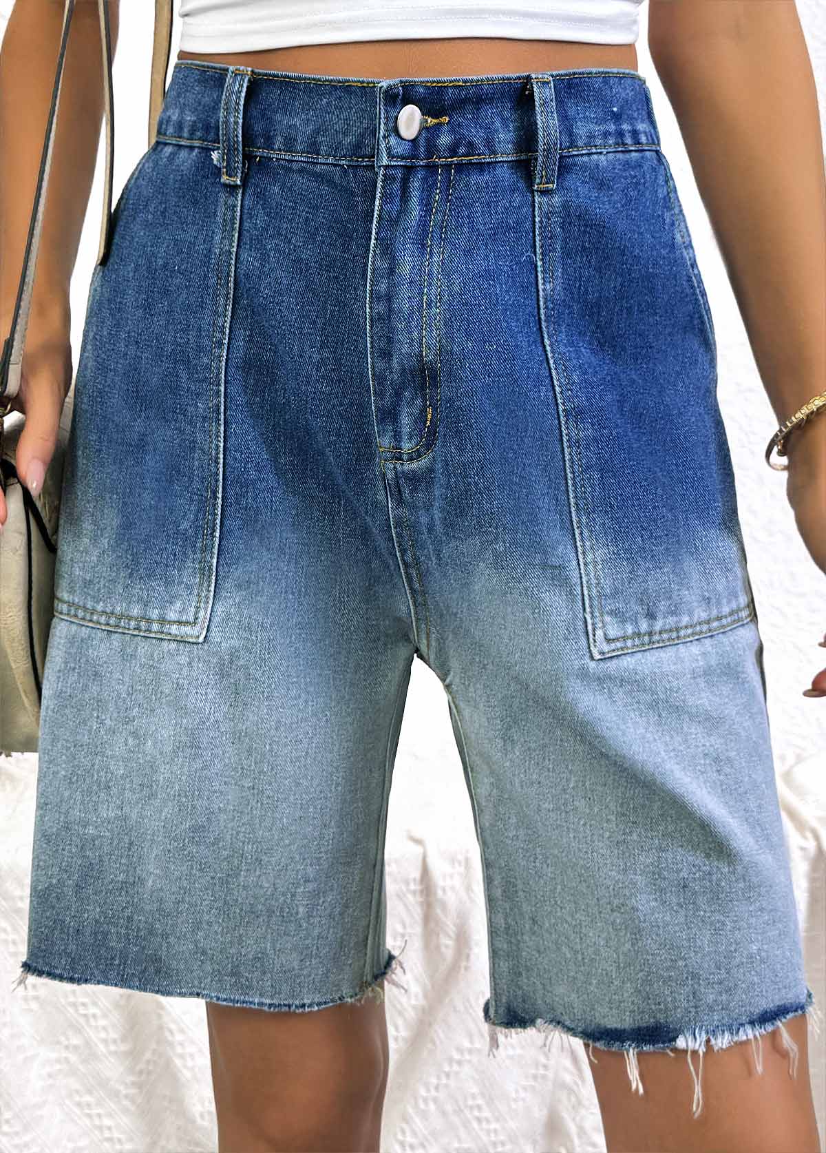 Denim Blue Ombre Wide Leg Button Fly Shorts