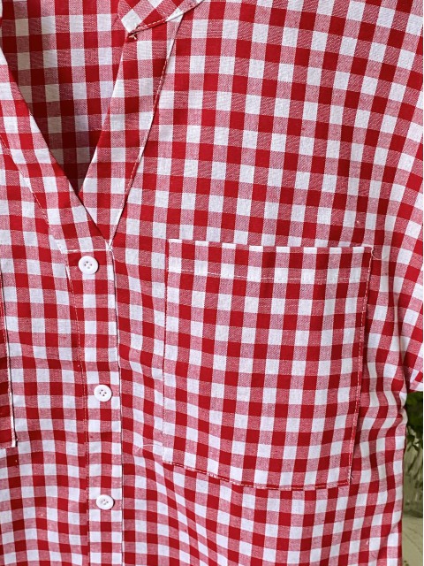 Wine Red Tummy Coverage Plaid Long Sleeve Blouse