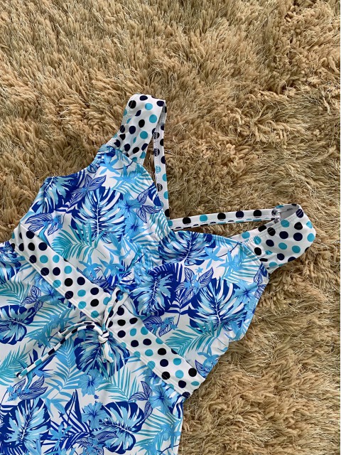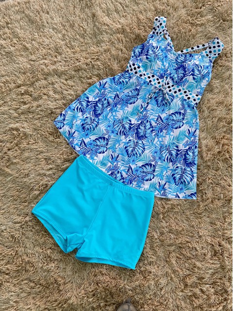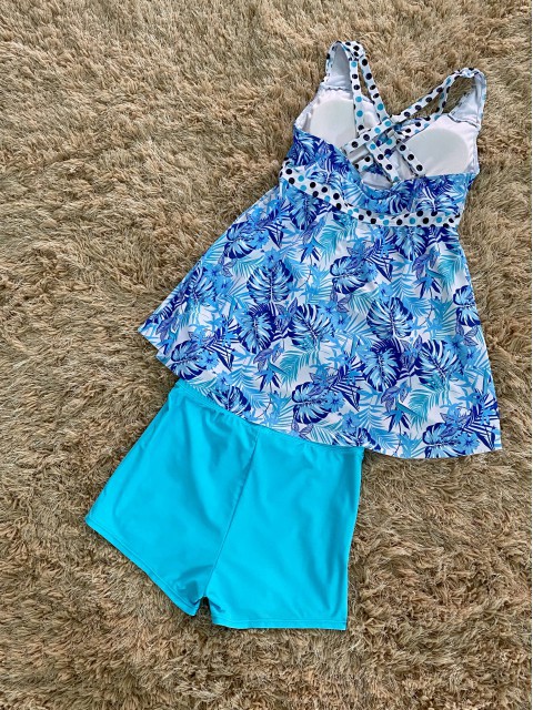 Patchwork Ombre Cyan Double Straps Tankini Top