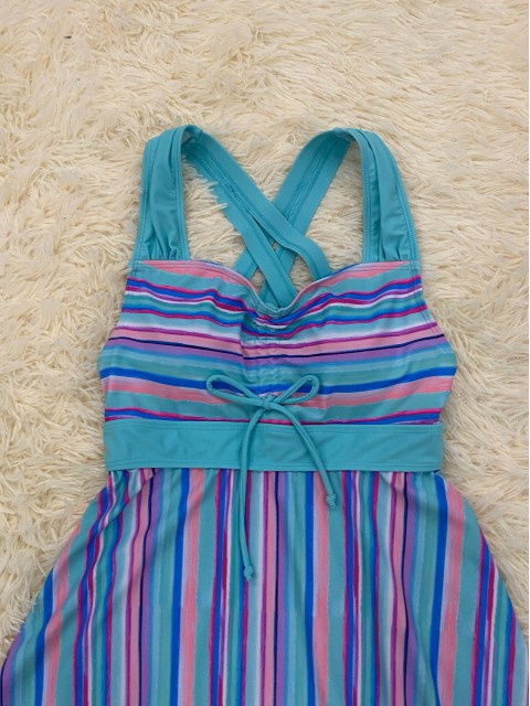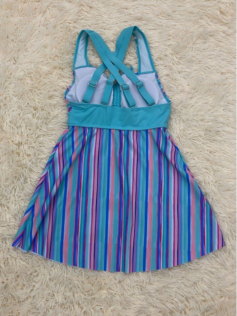Tummy Coverage Mid Waisted Striped Light Blue Tankini Set