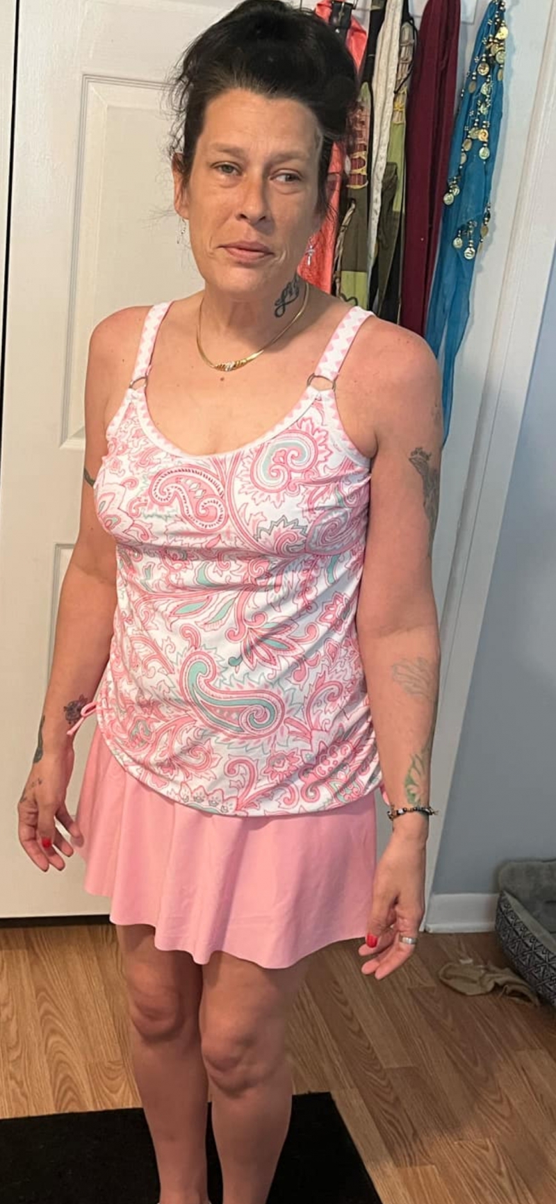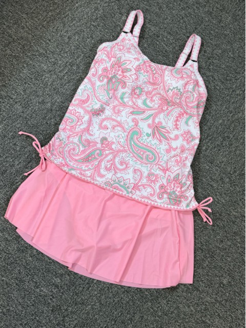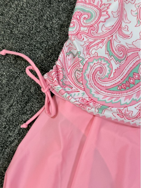 Ruched Mid Waisted Paisley Print Pink Tankini Set
