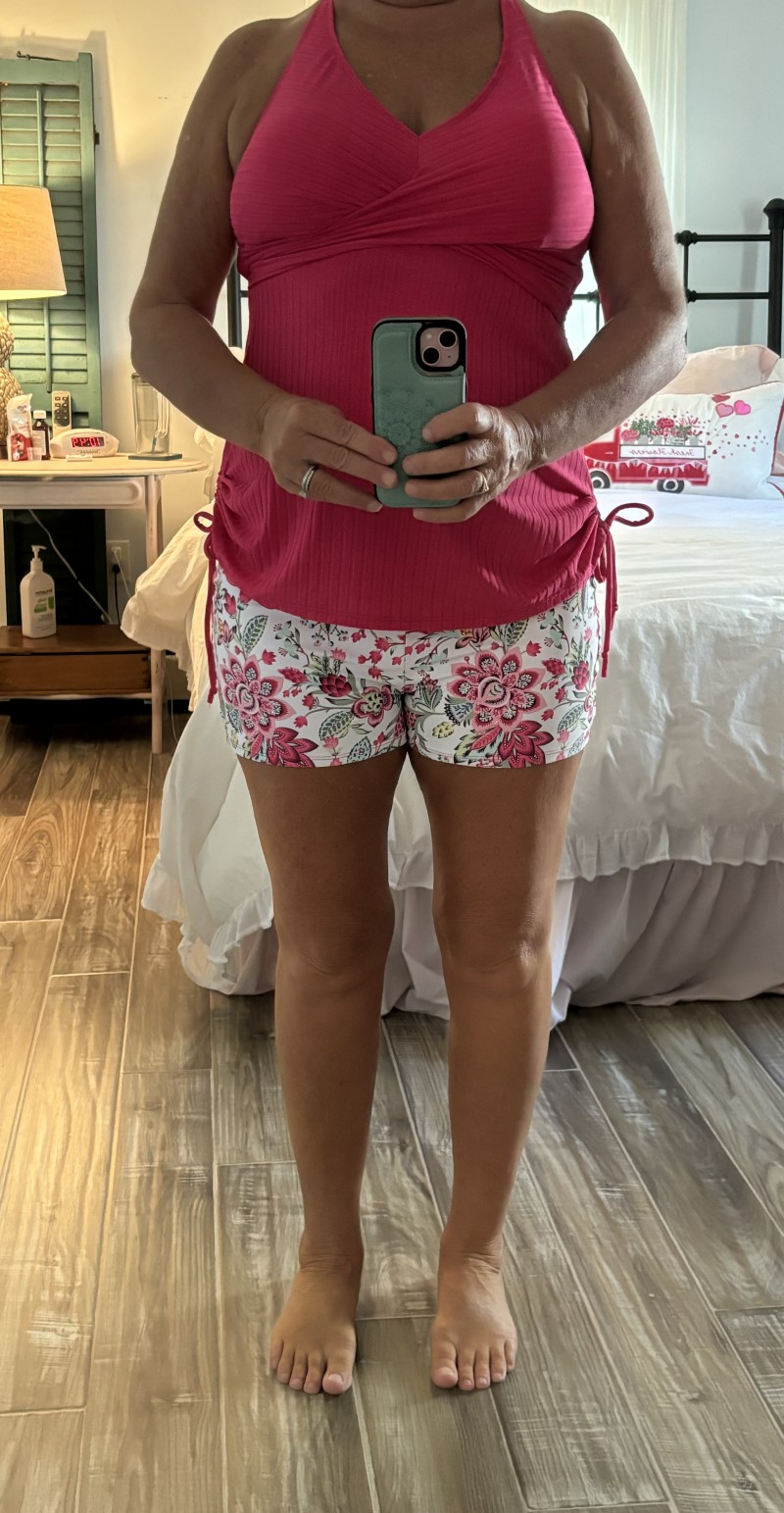 Make a splash with our hot pink bikini set! This playful ensemble features a solid-colored top and vintage floral-printed bikini bottoms. The top boasts a surplice wrap front with adjustable drawstrings, while the bottoms dazzle with stylish patchwork. Crafted from lightweight, high-stretch fabric, this swimsuit is your go-to for vacation vibes, offering both comfort and flair!