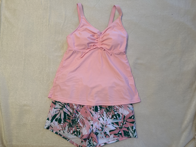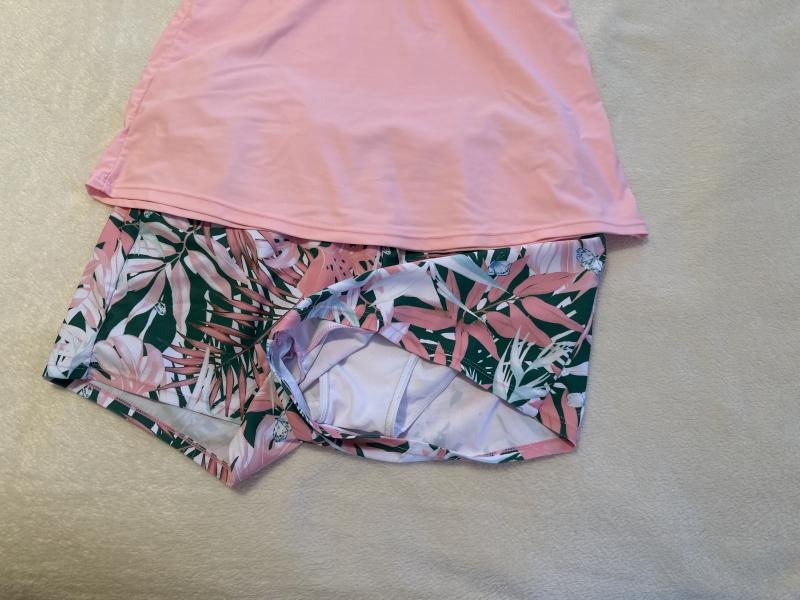 Mid Waisted Tropical Plants Print Dusty Pink Tankini Set