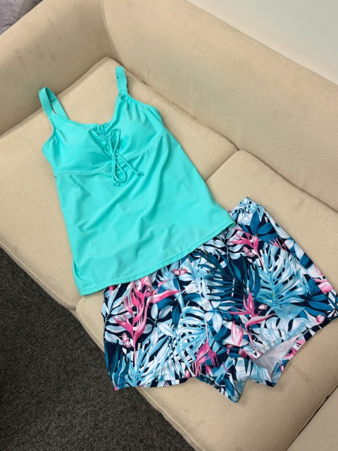 Mid Waisted Paisley Print Sage Green Tankini Set