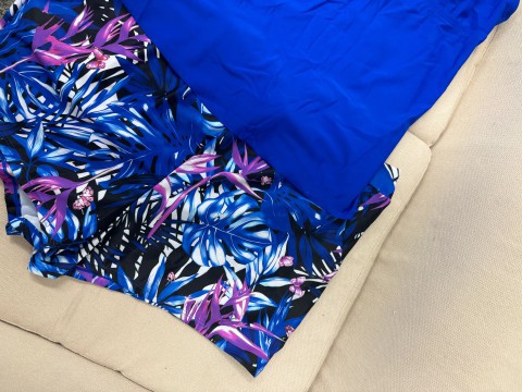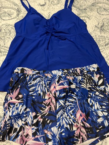 Dive into elegance with this royal blue tankini set, ideal for a beach getaway. The top boasts adjustable straps, removable padding, and a stylish drawstring at the bust. Paired with boyshorts featuring a vibrant tropical plant print and excellent tummy control. High elasticity ensures comfort and confidence as you enjoy the sun and waves.