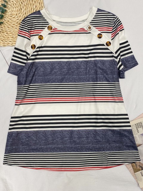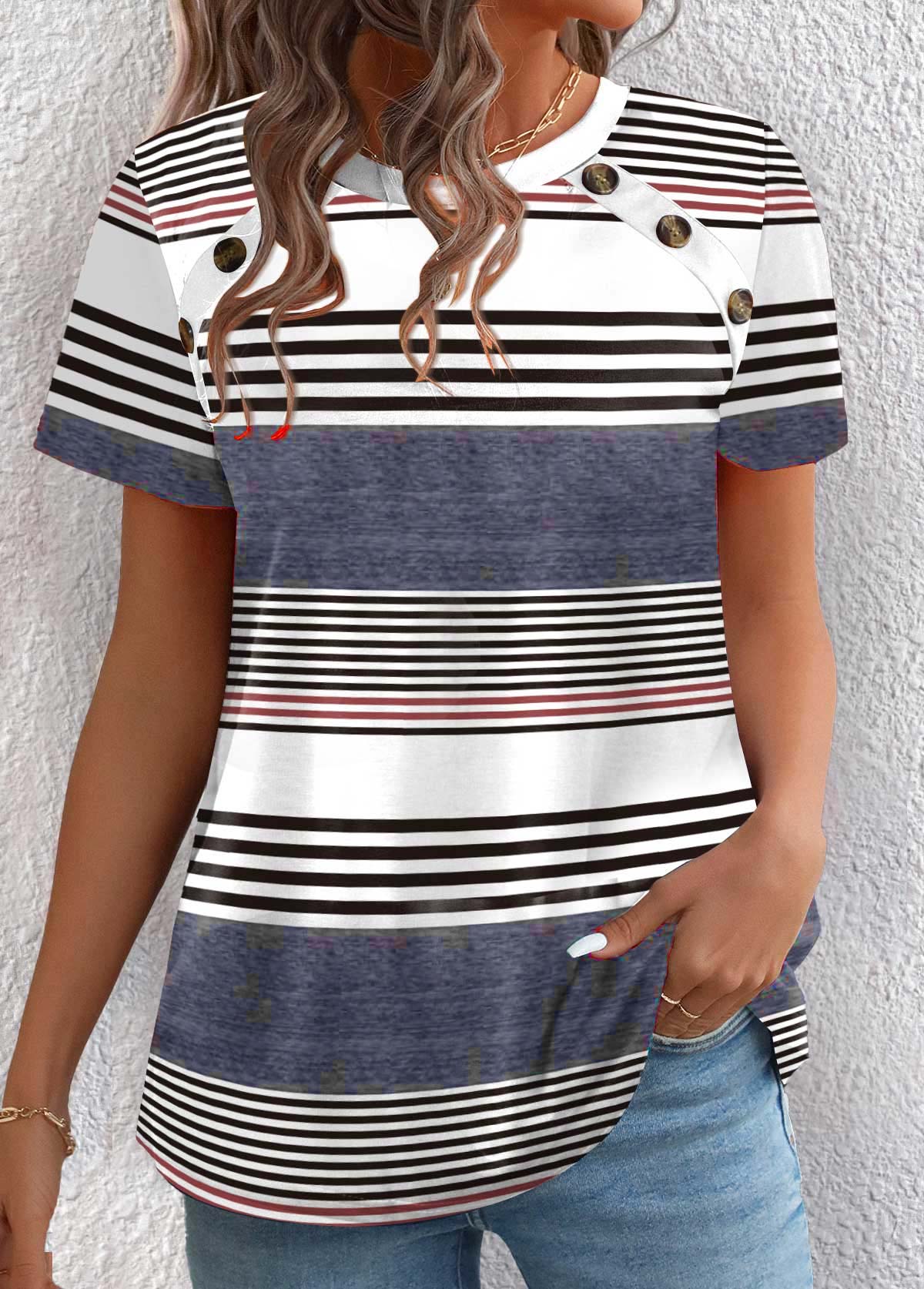 Black Tummy Coverage Dazzle Colorful Print T Shirt