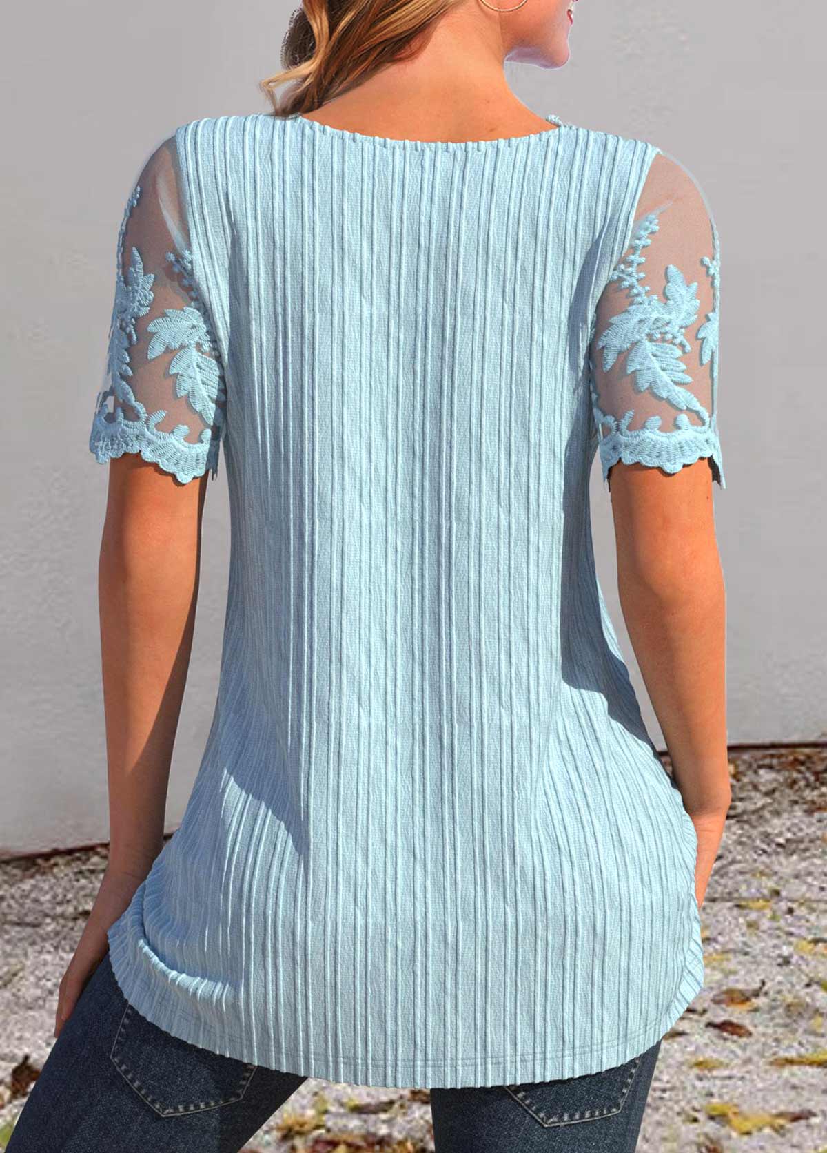 Navy Lace Short Sleeve Tie Collar T Shirt
