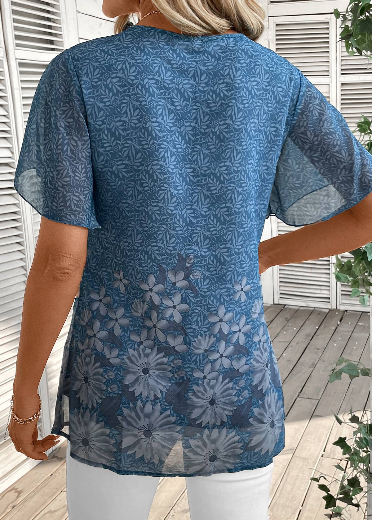Navy Lace Short Sleeve Tie Collar T Shirt