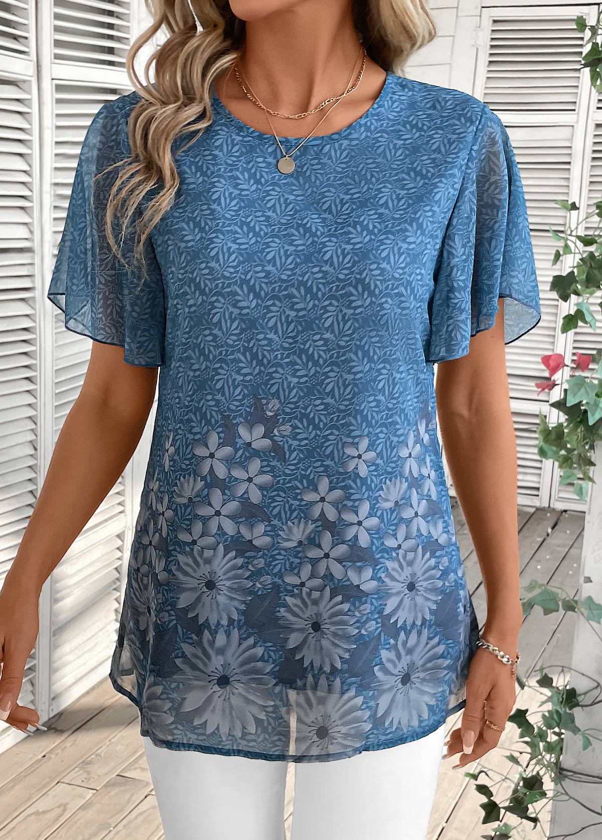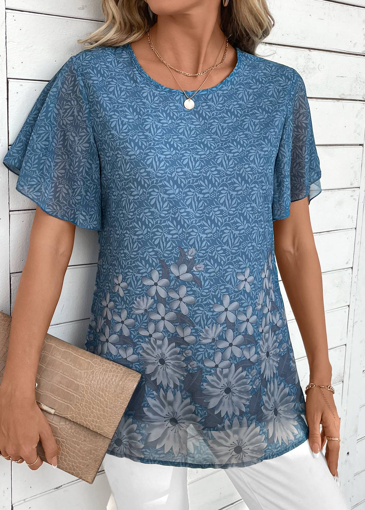 Dusty Pink Floral Print Frill Short Sleeve T Shirt