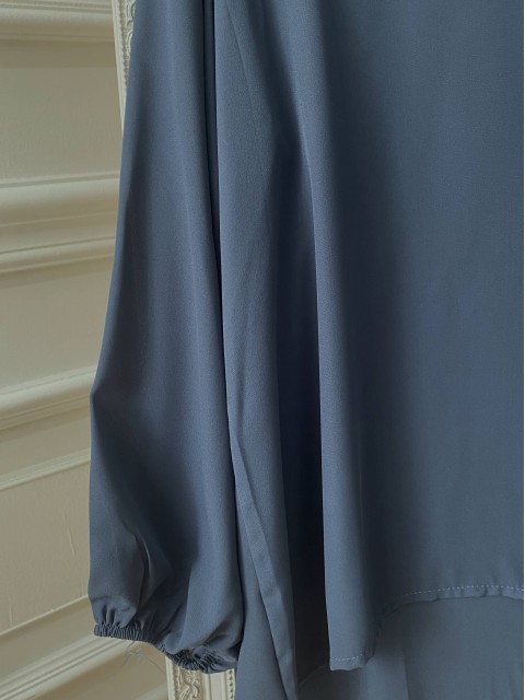 Denim Blue Peplum Denim-effect Print Long Sleeve Shirt