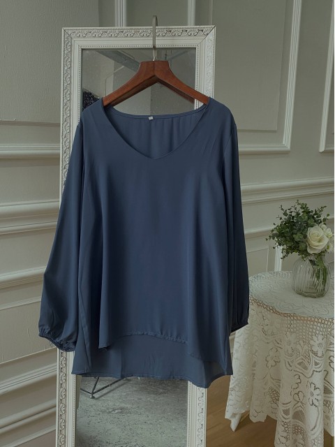 Wine Red Tummy Coverage Long Sleeve Split Neck Blouse
