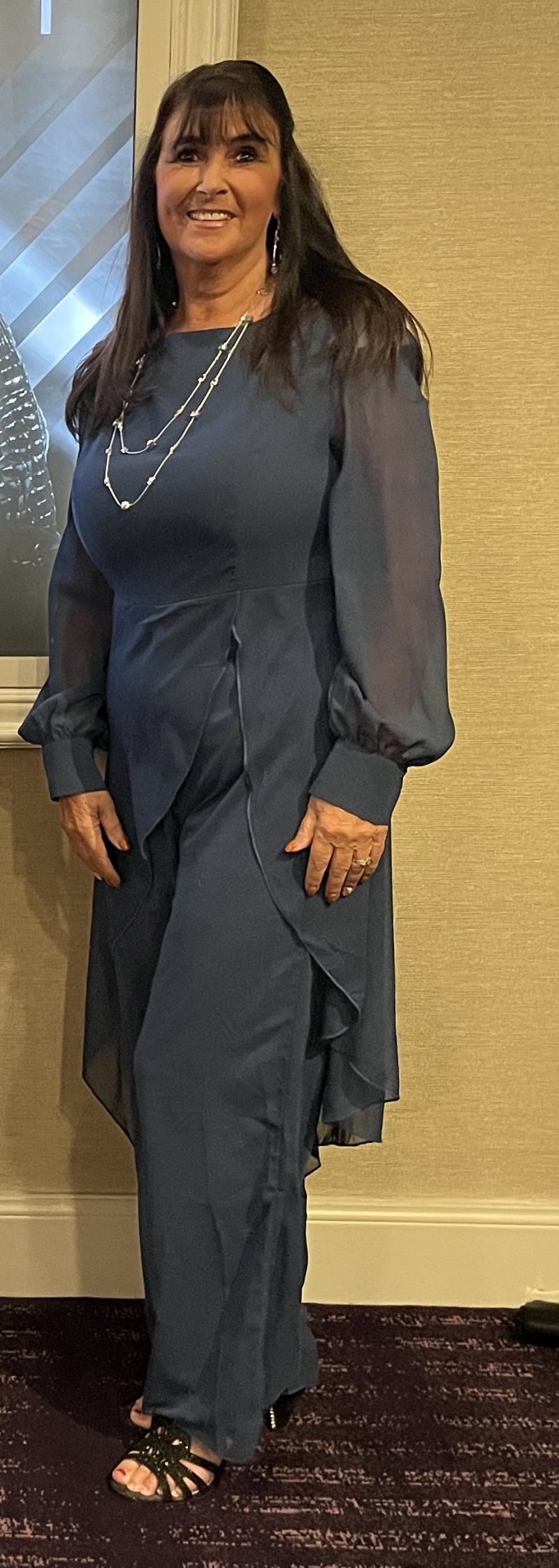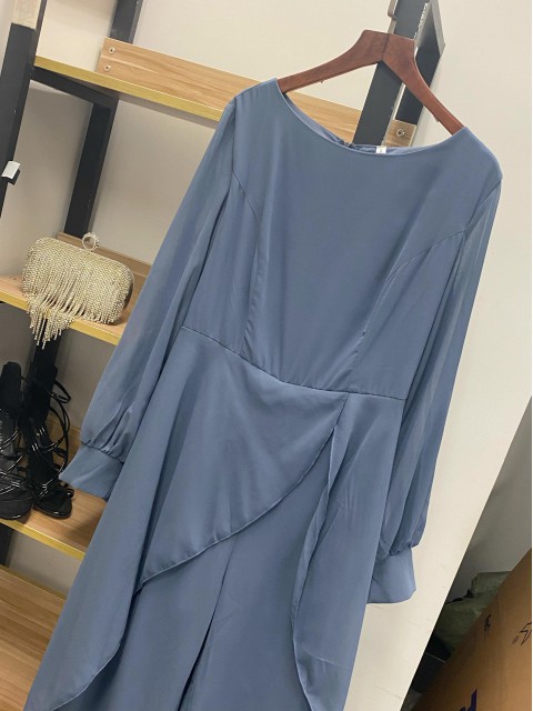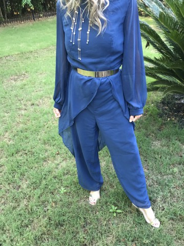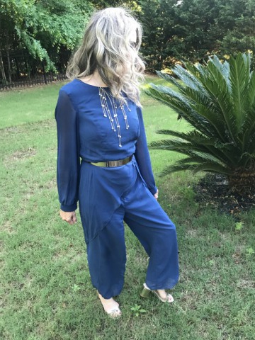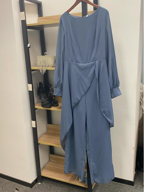 • Dusty Blue Patchwork Long Scoop Neck Jumpsuit | thumb picture