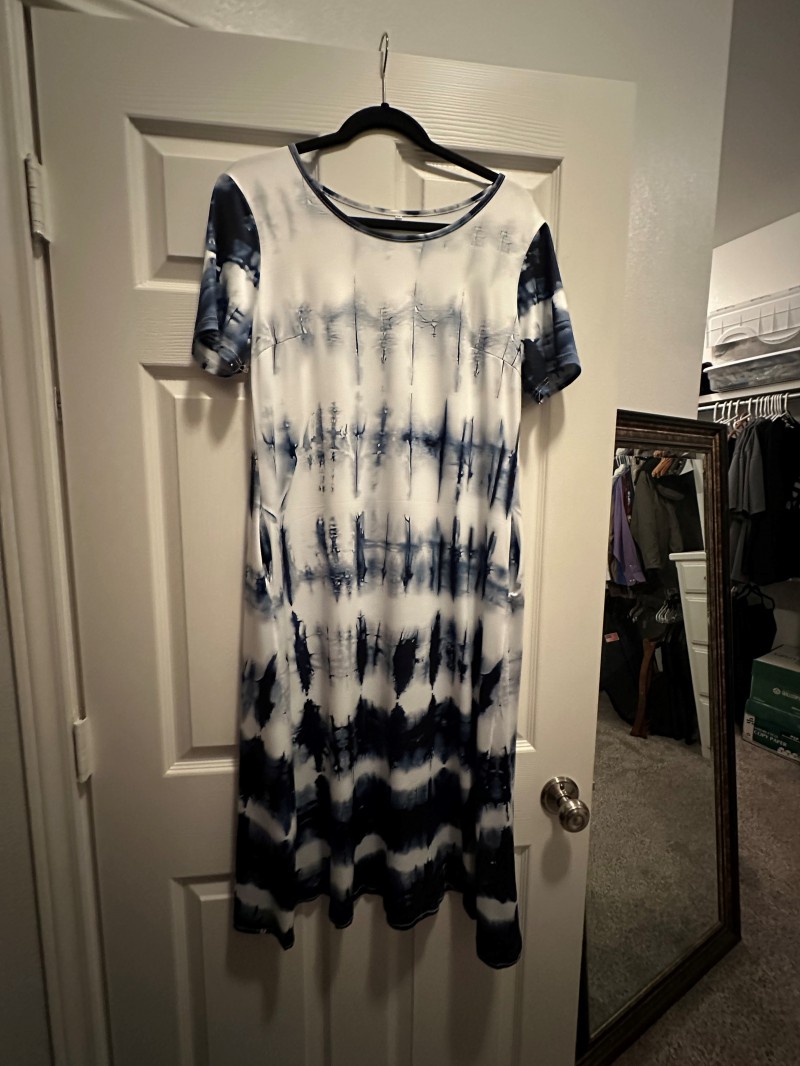 Navy Tummy Coverage Paisley Print Dress and Cardigan
