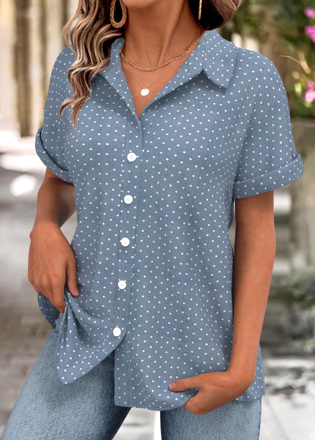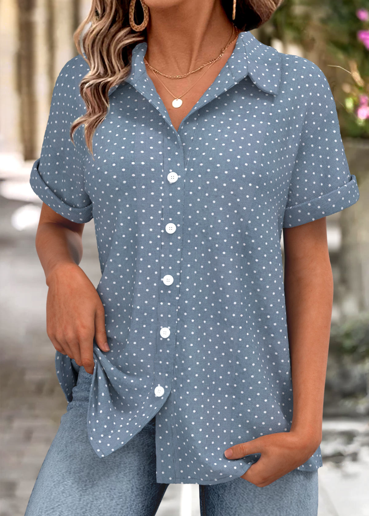 Multi Color Button Plaid Short Sleeve Blouse