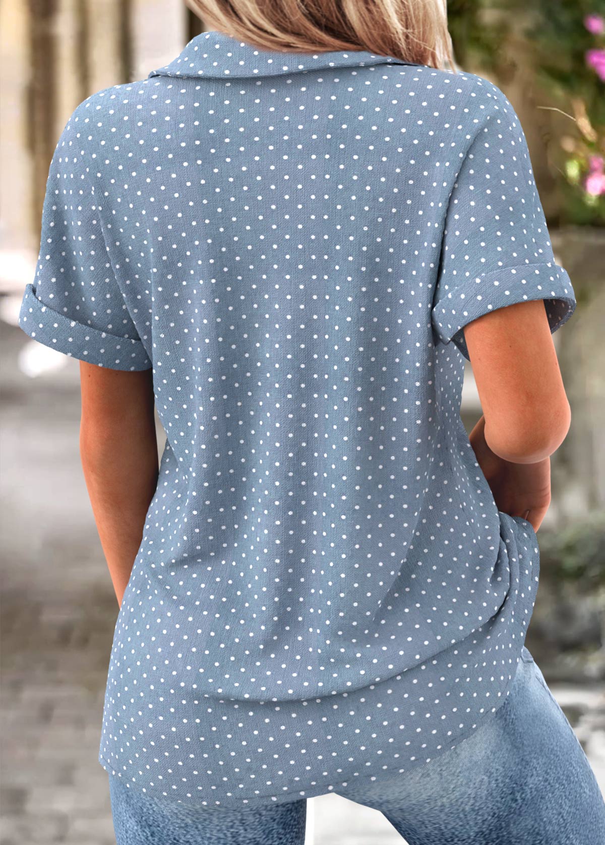 Pink Curved Hem Long Sleeve Turn Down Collar Shirt