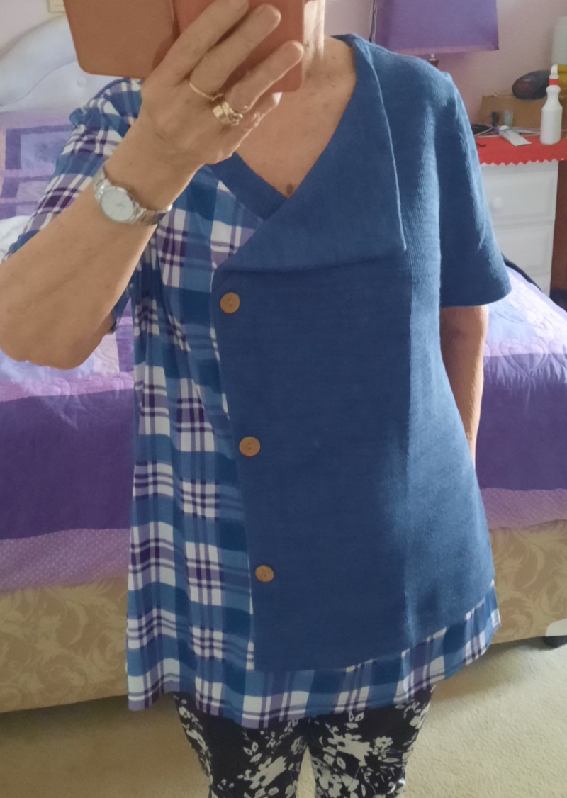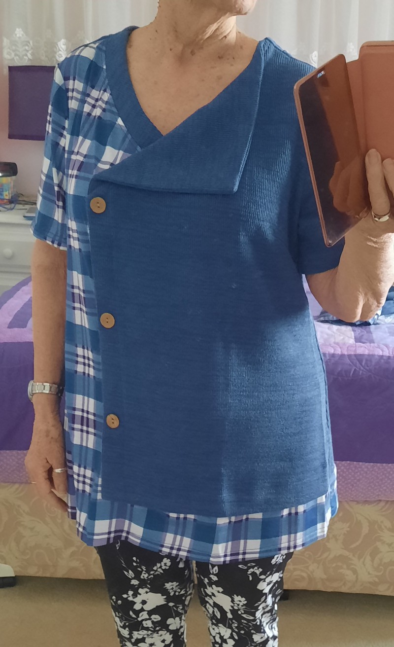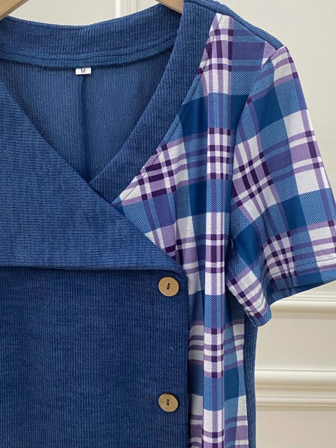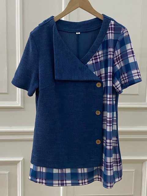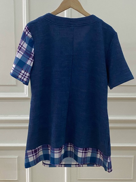 Navy Fake 2in1 Plaid Short Sleeve Shirt