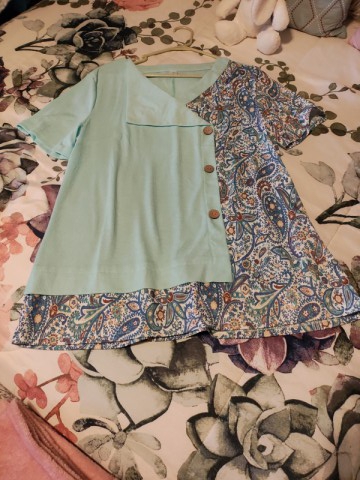 Blue Striped 3/4 Sleeve Split Neck Shirt