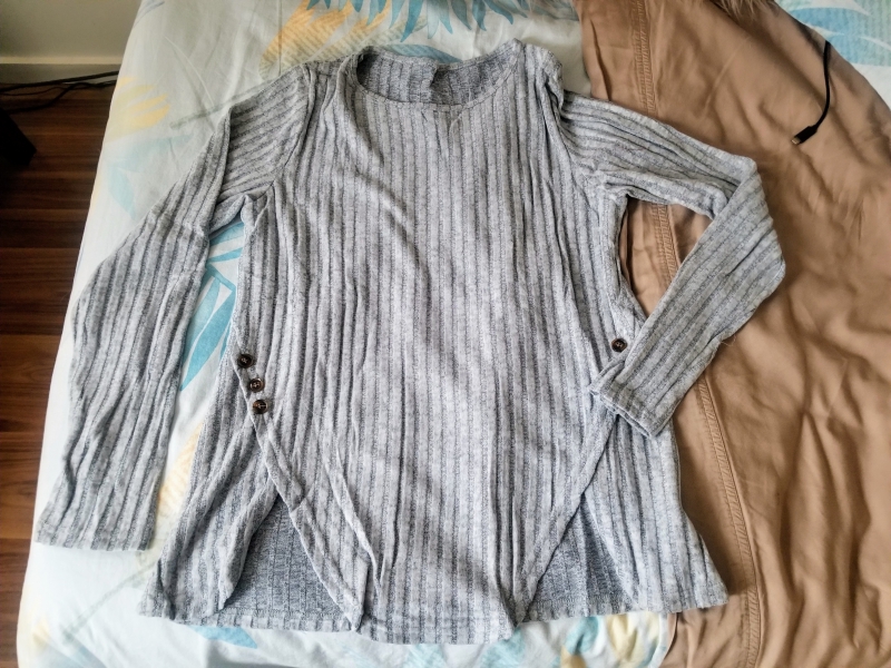 Gray Brown Tummy Coverage Long Sleeve T Shirt