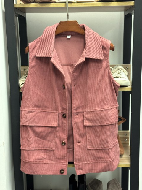 Add a touch of charm to your fall wardrobe with this pastel pink waistcoat. Its turn-down collar and single-breasted button closure create a classic look. Made from soft, comfy fabric, it pairs perfectly with a basic tee for effortless autumnal style.