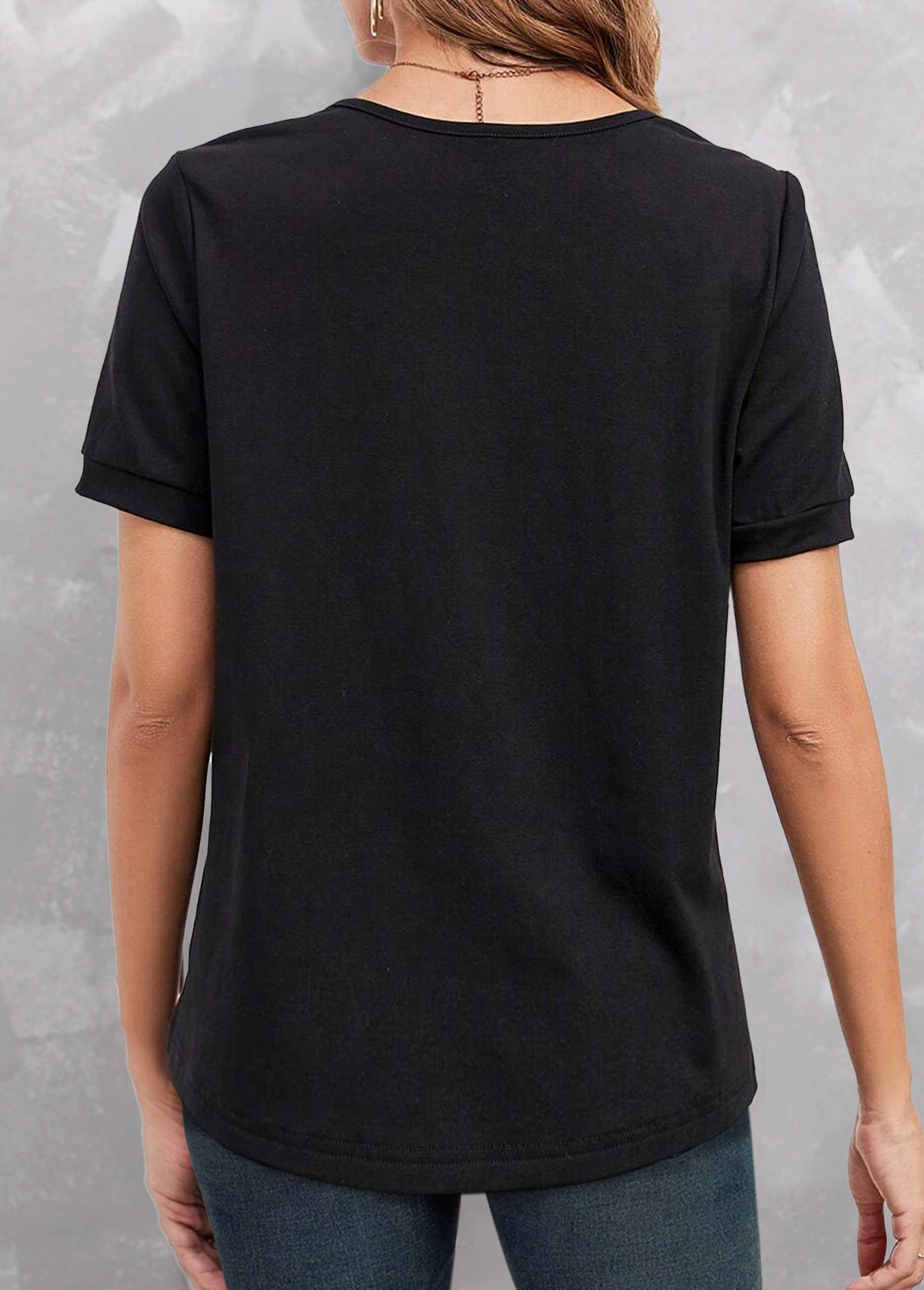 Black Patchwork Short Sleeve V Neck T Shirt