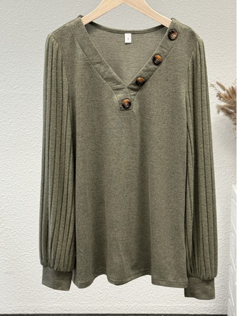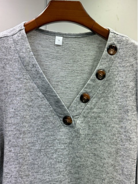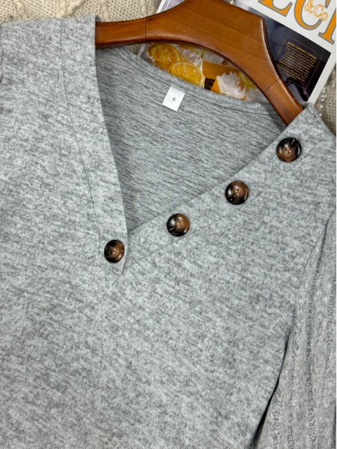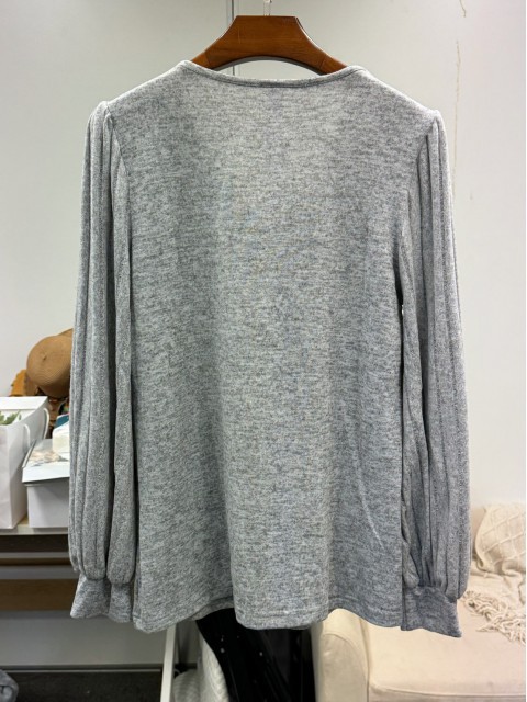 Gray Brown Tummy Coverage Long Sleeve Split Neck Sweatshirt
