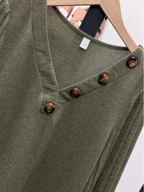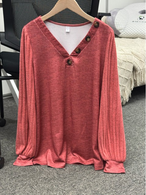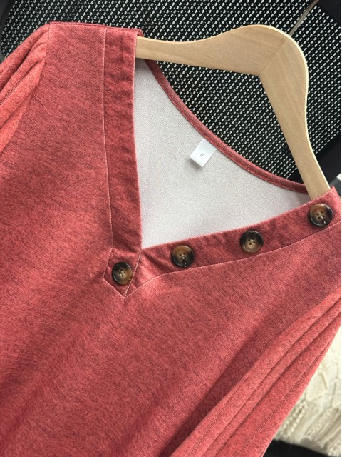 Wine Red Button Long Sleeve Asymmetrical Neck Sweatshirt