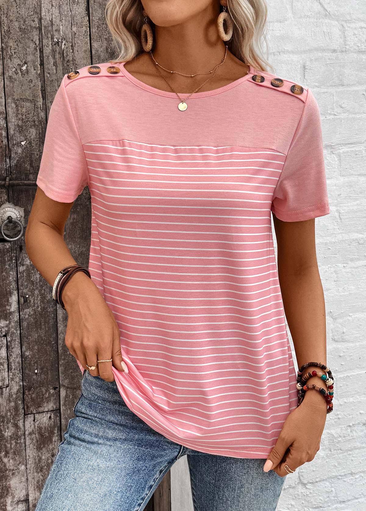 Light Pink Geometric Print Tummy Coverage T Shirt