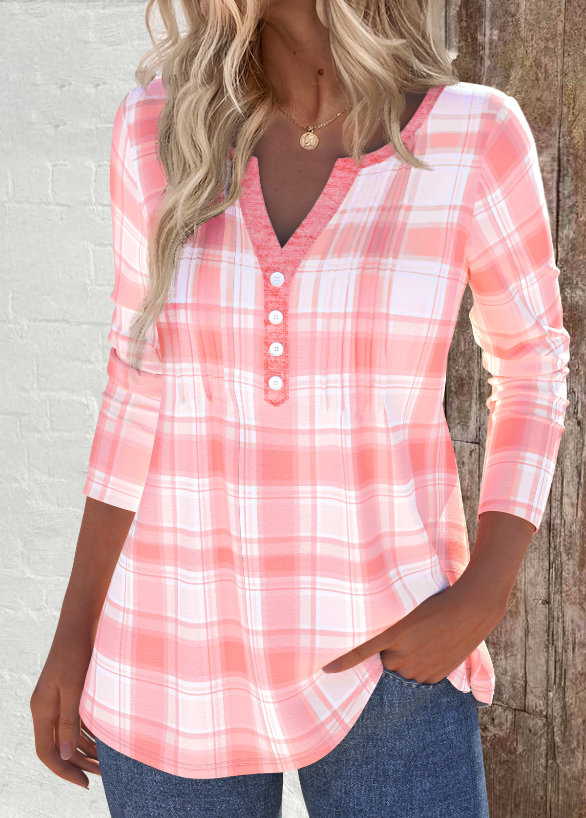 Dark Coffee Tummy Coverage Plaid Long Sleeve Sweatshirt
