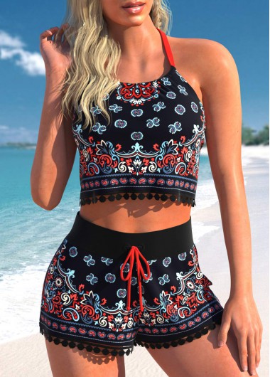 Added Successfully Halter Printed Tie Back High Waisted Bikini Set