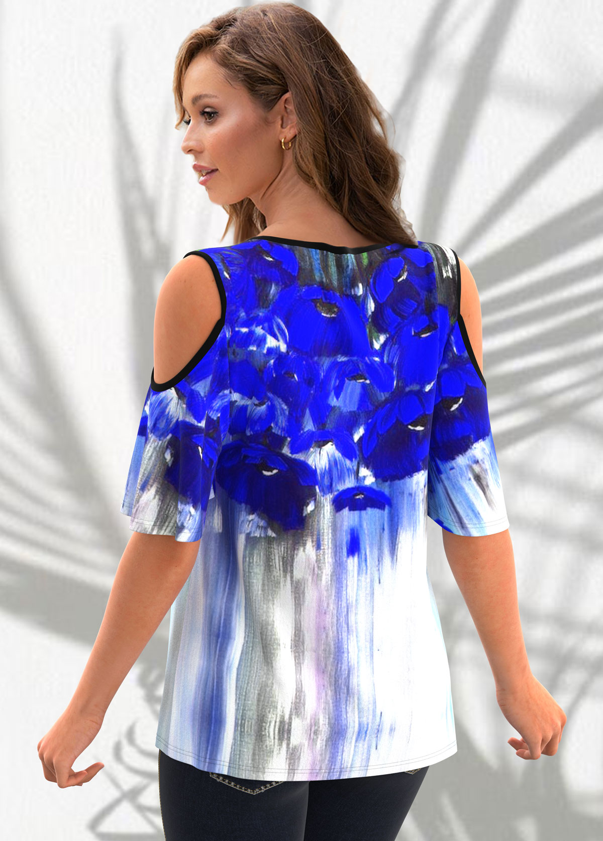 Cyan Tie Marine Life Print Half Sleeve Blouse